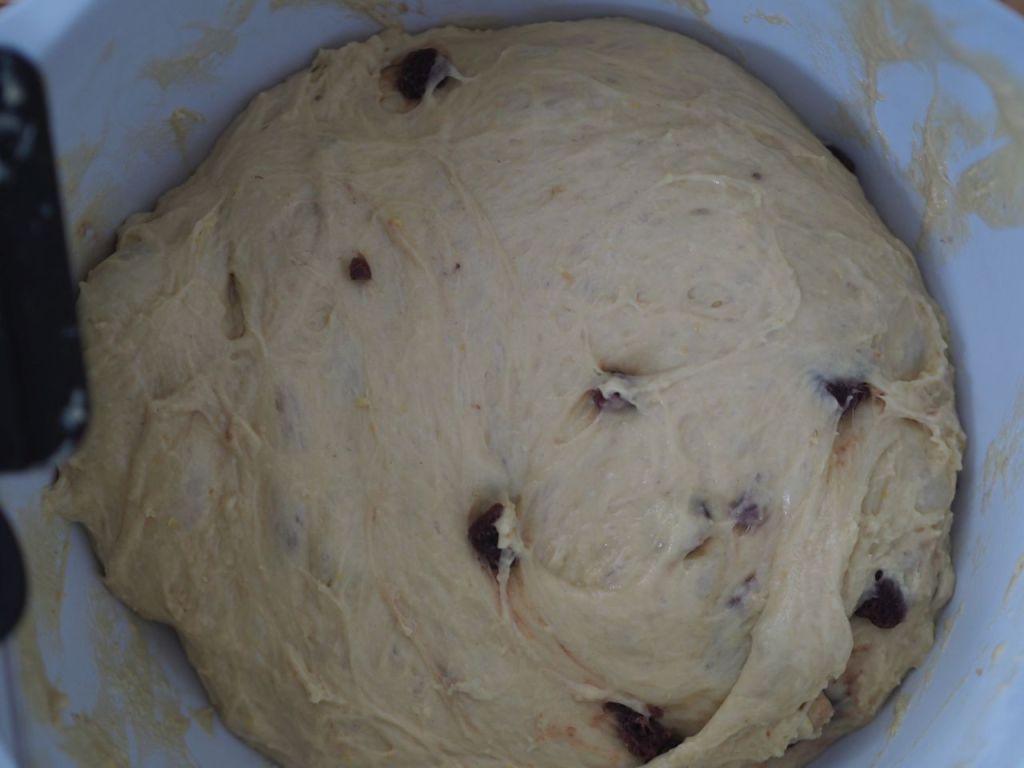 Wir haben es so ähnlich gemacht wie im Kochbuch. Statt den Rosinen nahmen wir getrocknete Himbeeren.