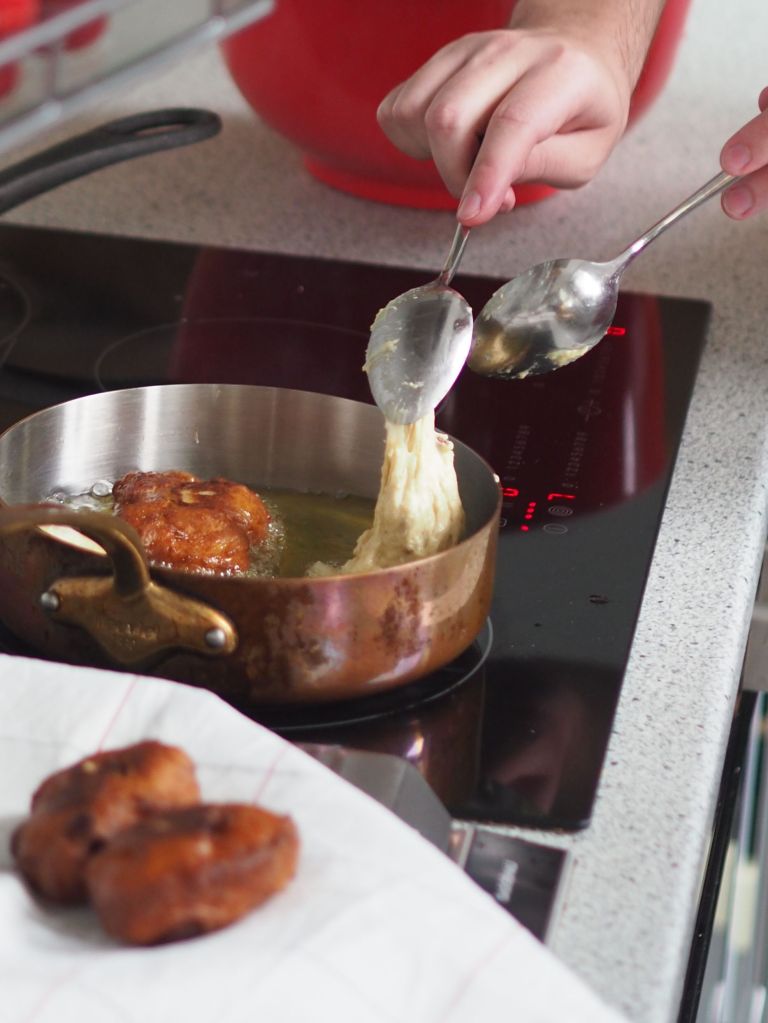 Diese Brandteigkrapfen gehören zum Menü vom Ostermontag dazu. Aber wenn ich das auch noch im Ostermontag-Beitrag veröffentlicht hätte, wäre der zu lang geworden.