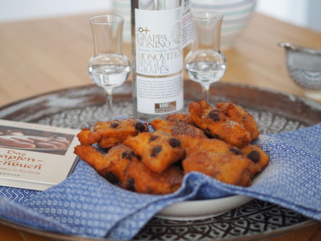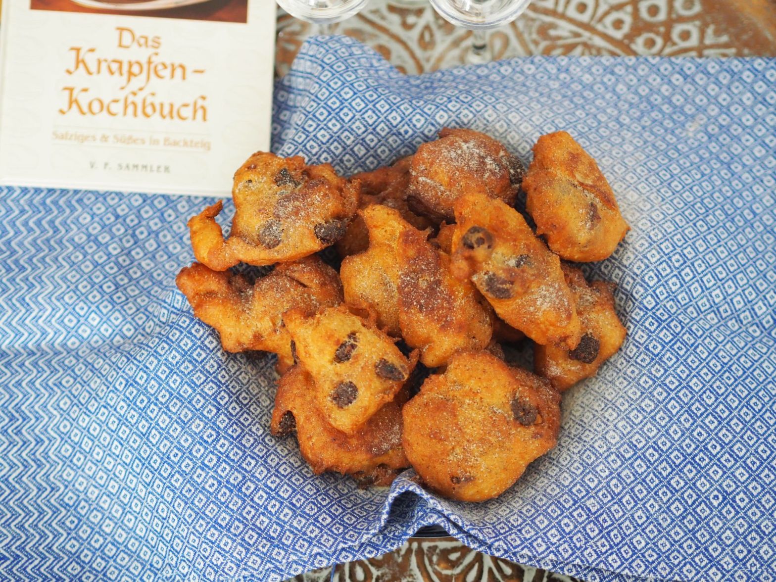 Vor sechs Jahren, am 31. Mai 2015, wurde dieser Blog gestartet. Es gab immer wieder etwas Neues zu entdecken, letztes Jahr war es ein gänzlich neues Gebiet: das Risotto, das wir unserer kulinarischen Karte hinzufügen und der terra incognita abspenstig machen konnten; oder die traditionelle Zubereitung von Polenta, mit der wir unser Repertoire erweitern konnten. Entdeckt haben wir dies auf den Seitenwegerln, die man einschlug beim Schmökern über dieses oder jene interessante Gericht auf diesem oder jenem erkenntnisreichen Blog oder diesem oder jenem gewitzt geschriebenen Kochbuch – dabei habe ich meine Liebe für ältere, oder zumindest leicht angestaubte Kochbücher aus dem Antiquariat entdeckt, wie zum Beispiel für das Kochbuch über die Krapfen, das mit einigen geschmalzenen Gustostückerln aufwarten kann wie den Krapfen aus Gödöllö aus der k.u.k. Hofküche, den eleganten feinen Pálffy-Krapfen, am besten gereicht mit einem Weinchadeau oder den Venezianischen Krapfen. Man verzeihe mir die Abschweifung zu den Schmalzgebackenen. Abschweifungen sind der Luxus, den wir uns beim Kochen leisten. Auf diesem Umweg haben wir die Venezianischen Krapfen kennengelernt, die wir heute vorstellen. Denn wie heißt es so schön: Umwege verbessern die Ortskenntnisse. Dabei sind wir noch nicht einmal über Europa hinausgelangt, zumindest meistens. Wir haben jede Menge Neues kennen und schätzen gelernt und so lange es etwas Neues zu entdecken gibt, wird die Fahrt ins Blaue nicht enden. Und Essen muß man, so wird es immer sein. Deshalb sind wir frohen Mutes und freuen uns auf ein neues Jahr mit spannenden Ereignissen in der Küche! Man darf Krapfen essen, nicht nur zur Karnevalszeit. Und wir feiern heute ja sechs Jahre Küchenereignisse.