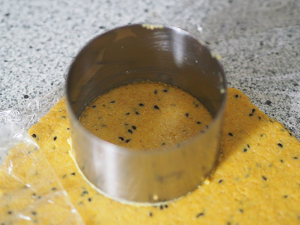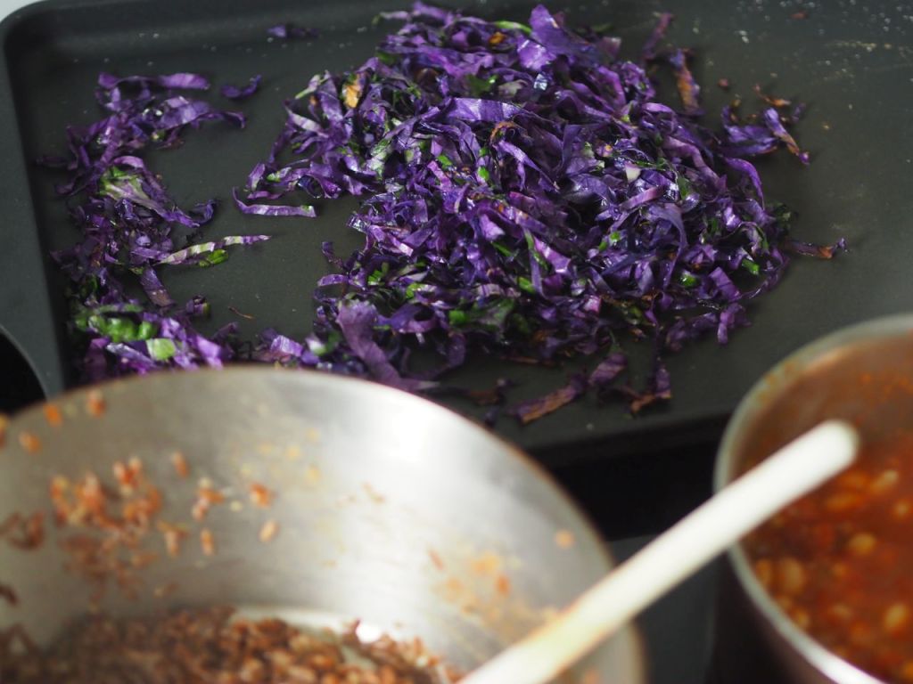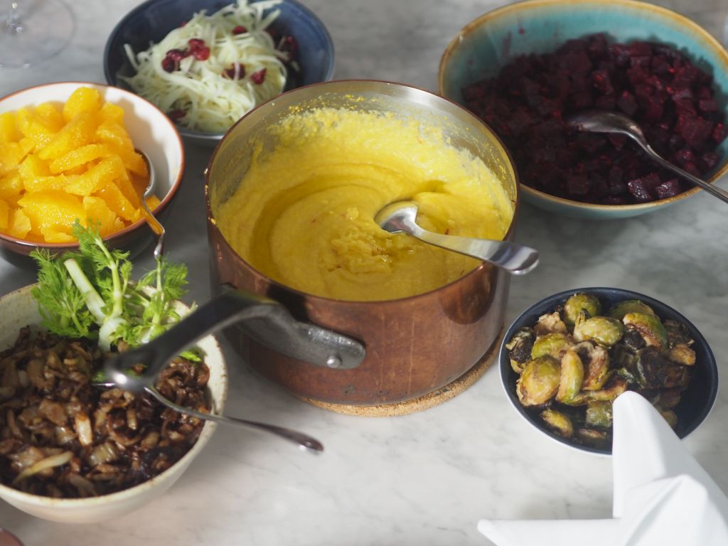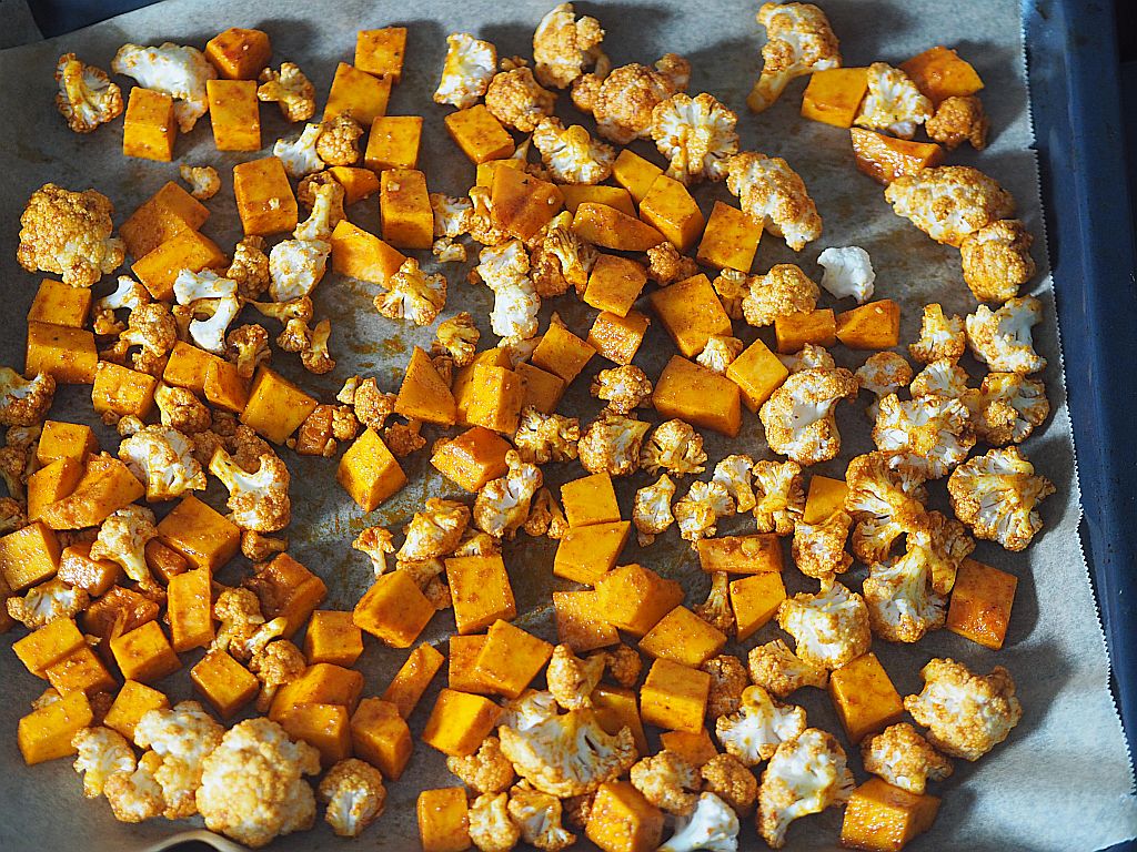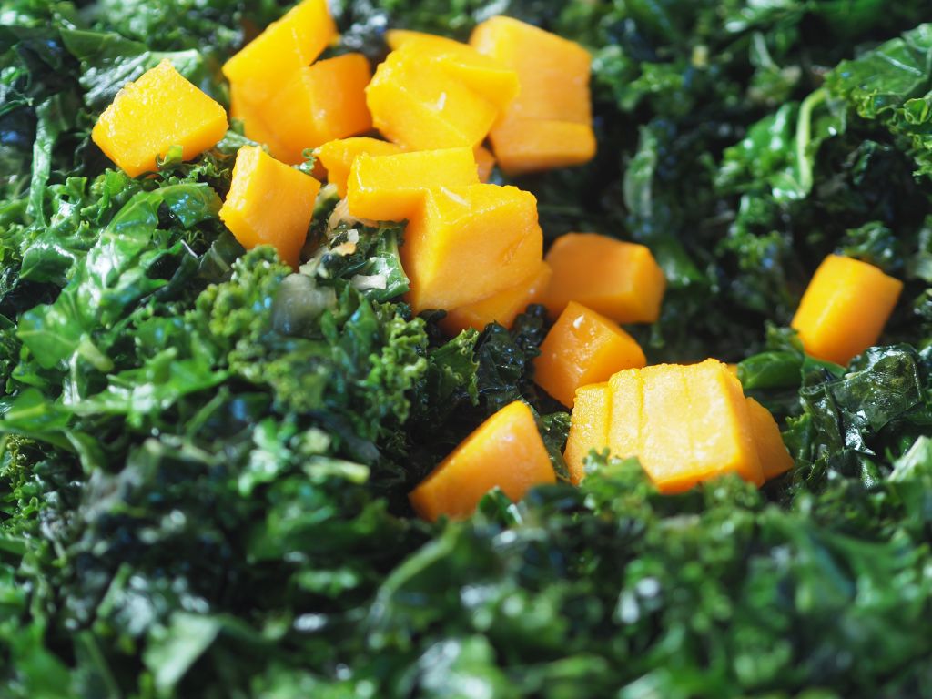 Kürbis schälen, Kerne entfernen, mit Salz und wenig Olivenöl vermischen. Zum Fleisch schieben bei 190°, bis es weich ist, etwa 25 min. Dann herausnehmen, das Gemüse in einen Topf geben, Butter hineingeben, sowie Misopaste, Mirin.