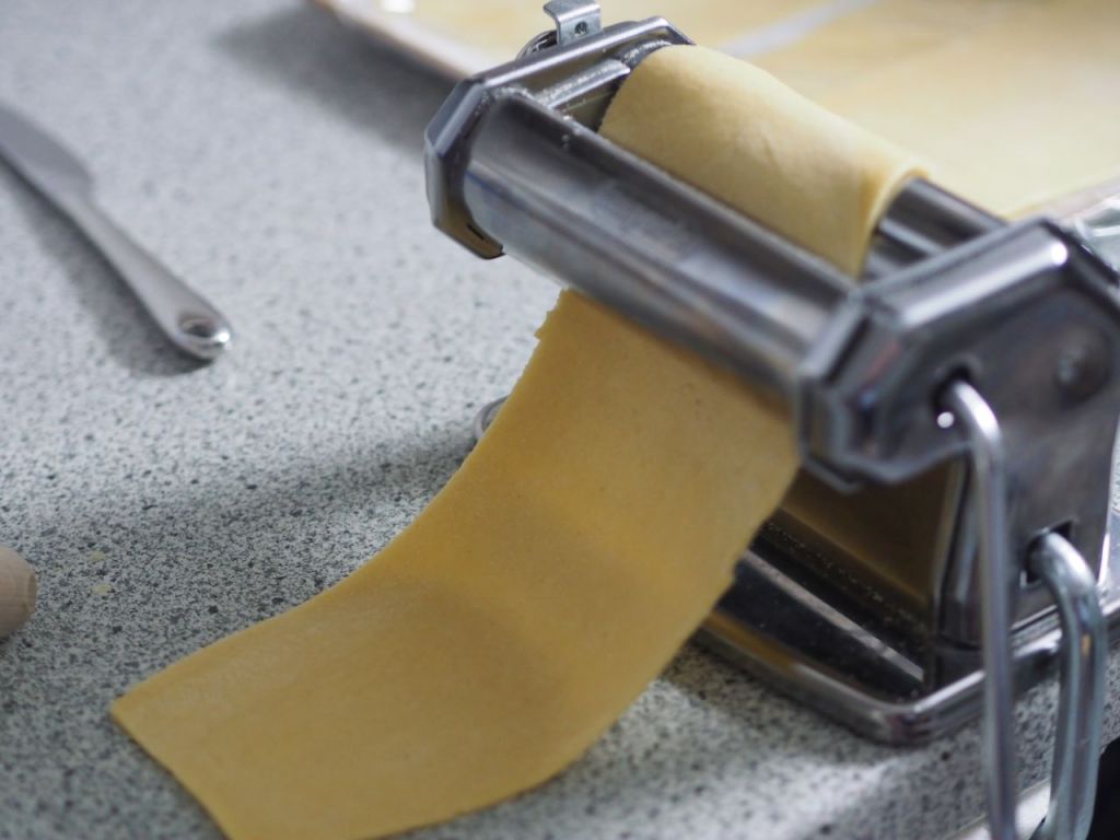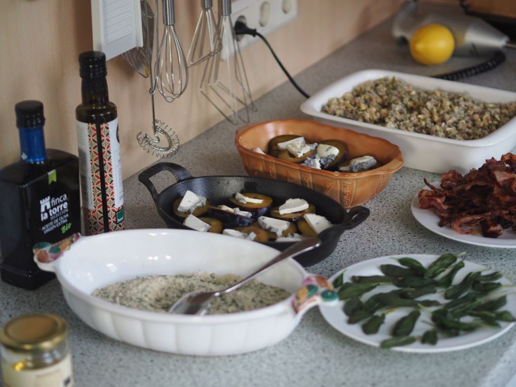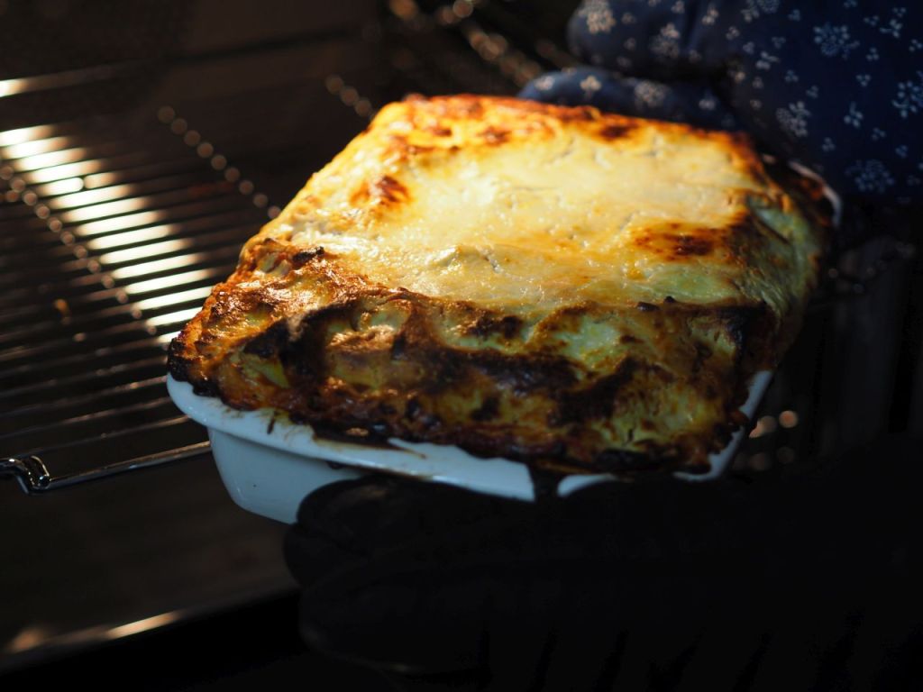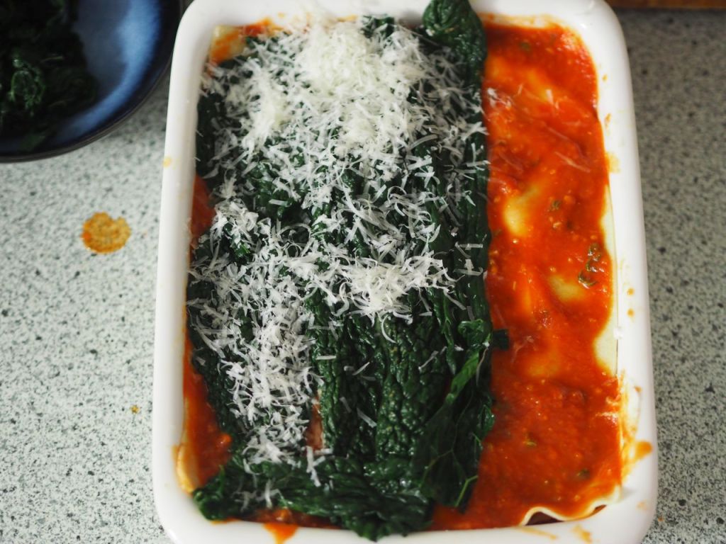Der neue Ofen wurde mit einer Lasagne eingeweiht, herbstlich gestimmt mit Kürbis, Kohl und Tomatensauce, die Lasagneplatten wurden selbst gemacht. Eine würdige Premiere für den neuen Ofen.
