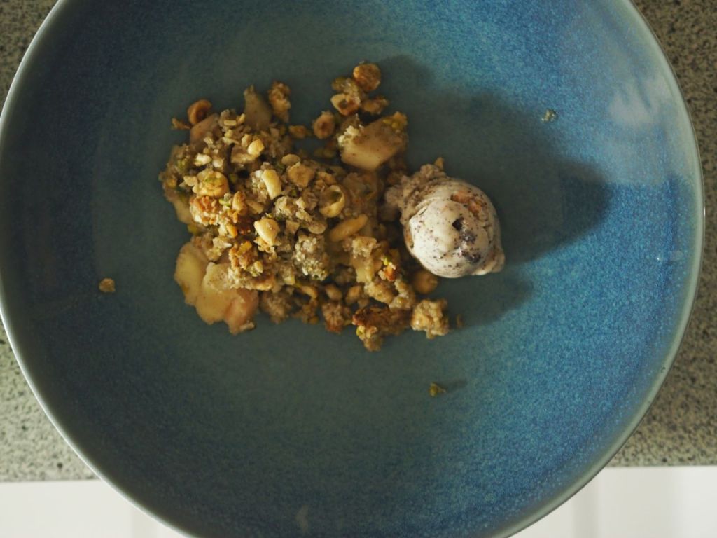 Lauwarmer Apfel-Crumble mit Mohneis