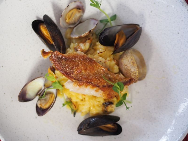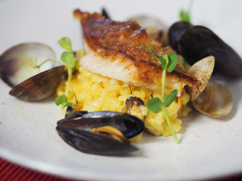 Rotbarsch mit Safranmuschel-Risotto