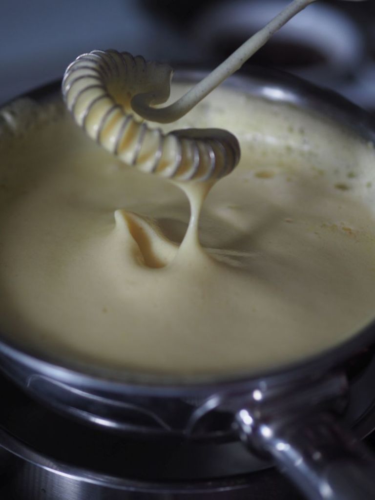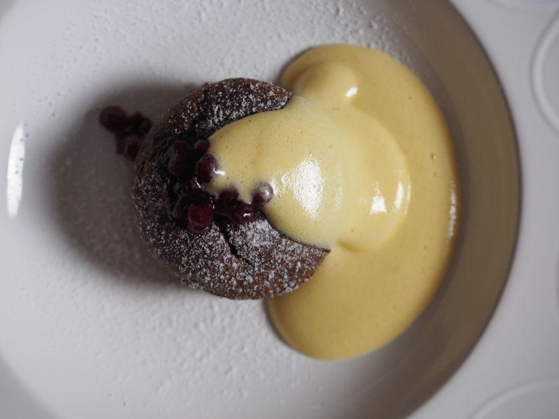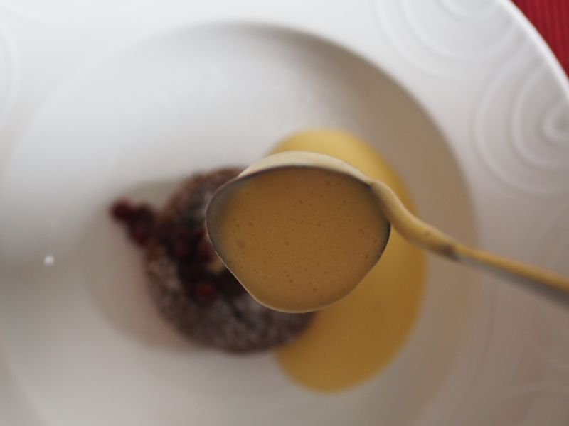 Lebkuchen-Soufflé mit Biersabayon