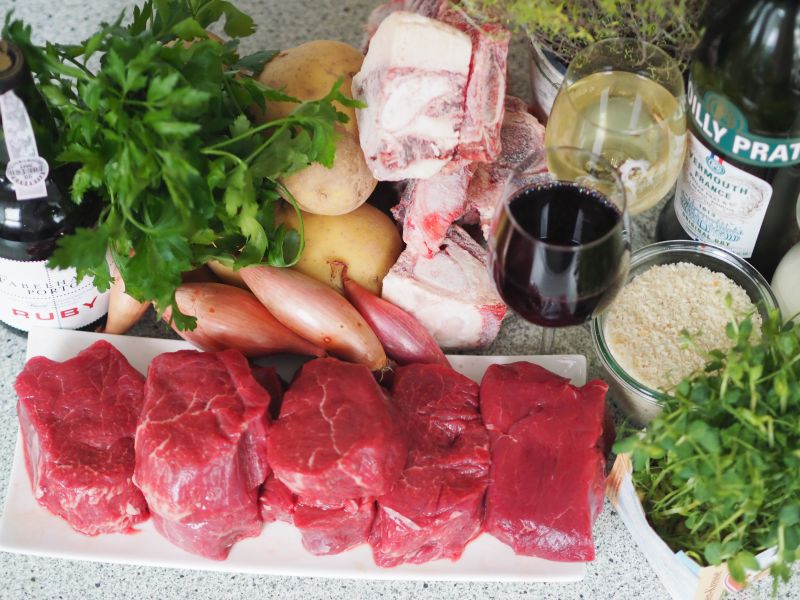 Zutatenbild: Filetsteak mit Kartoffelgratin und Rotweinsauce