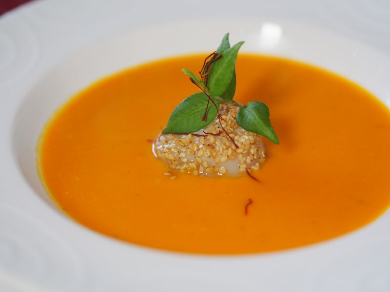 Zutatenbild: Kürbiscremesuppe mit Sesam-Jakobsmuschel
