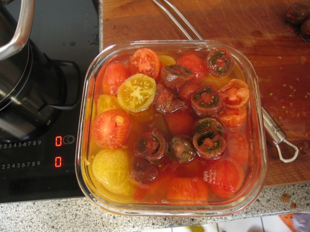 Lachs geht mit der Tomate gerne eine kulinarisch harmonische Kombination ein. Hier kommt eine Kombination mit nur gebeiztem aber ansonsten nicht gegarten Lachsfilet mit verschiedenen Tomatentexturen zur Vollendung. Weil grad Tomatenzeit ist.