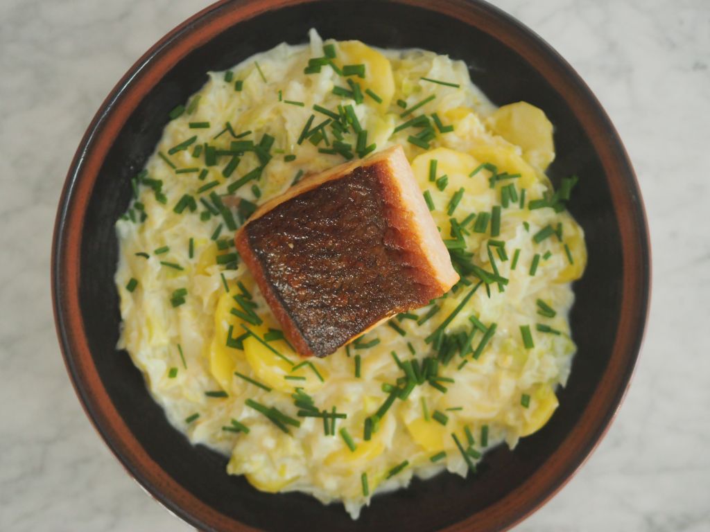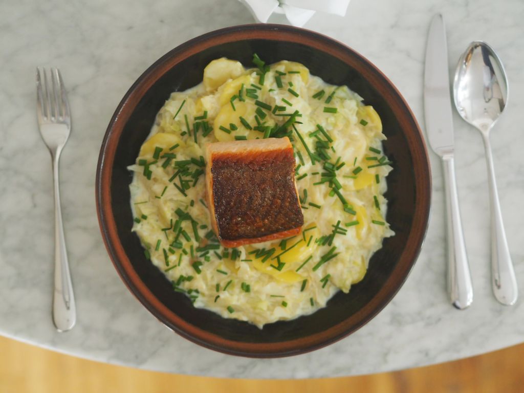 Nun zum Feuerwerk der Fotos vom Lachs und Wels mit den Kartoffeln auf Bäckerinnen-Art und dann dem Kräuterlikör.