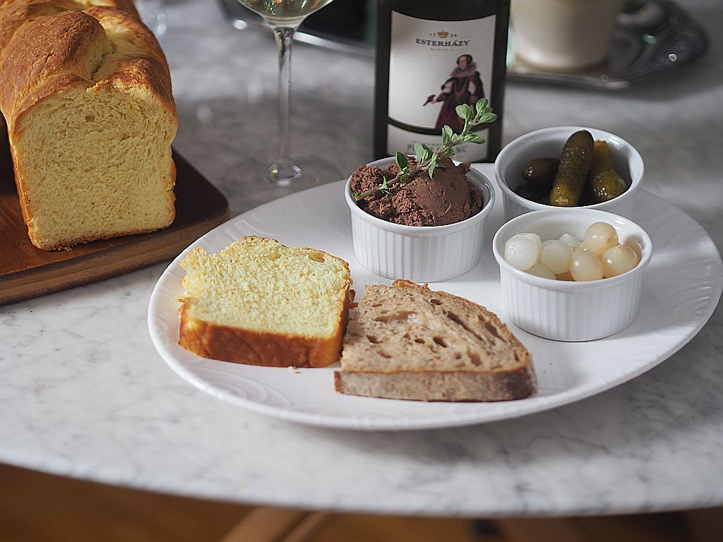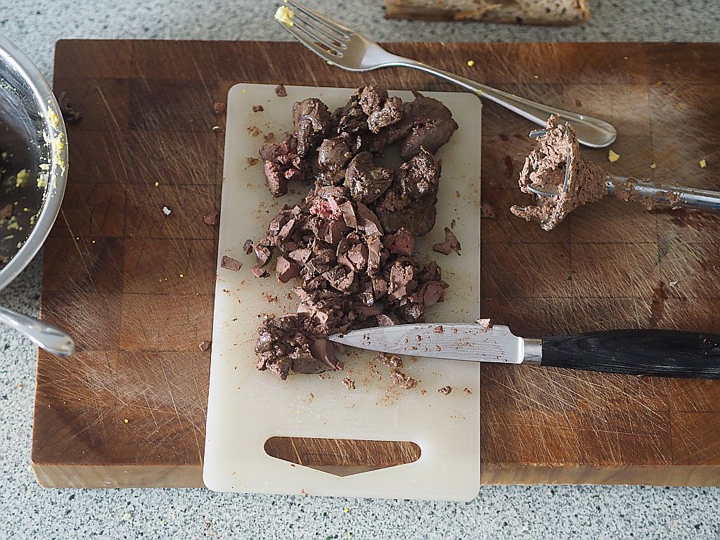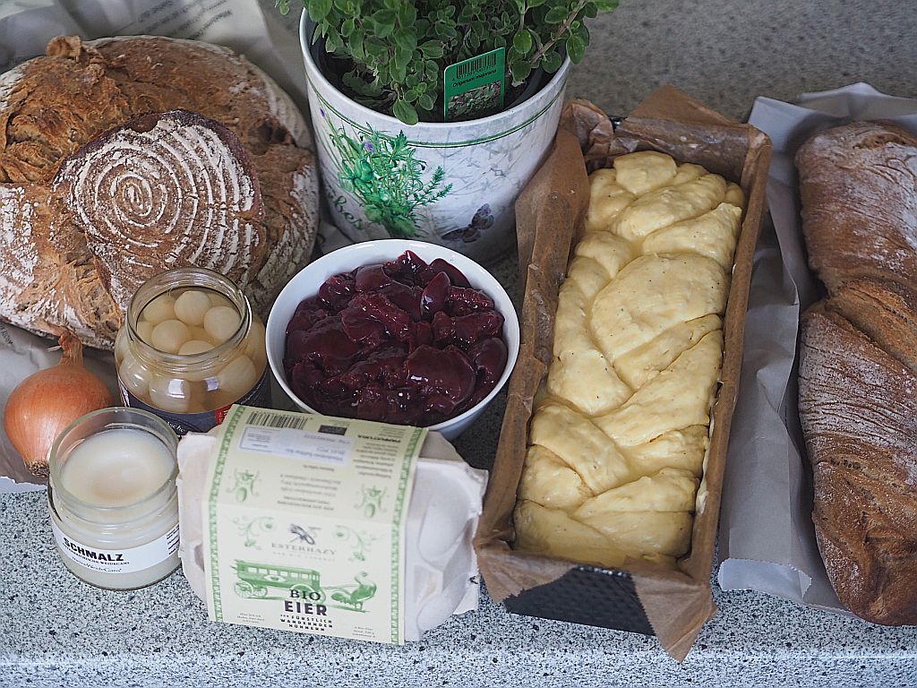 Unser 4,2 kg schwerer Flieger wurde samt Innereien eingeflogen; Ganslleber wurde frisch gemacht von der Hofköchin. Dazu ein Sauerteig-Toast von Öfferl und fertig ist die Vorspeis. Magen, Herz und Halserl wurden für die Soß verwendet.