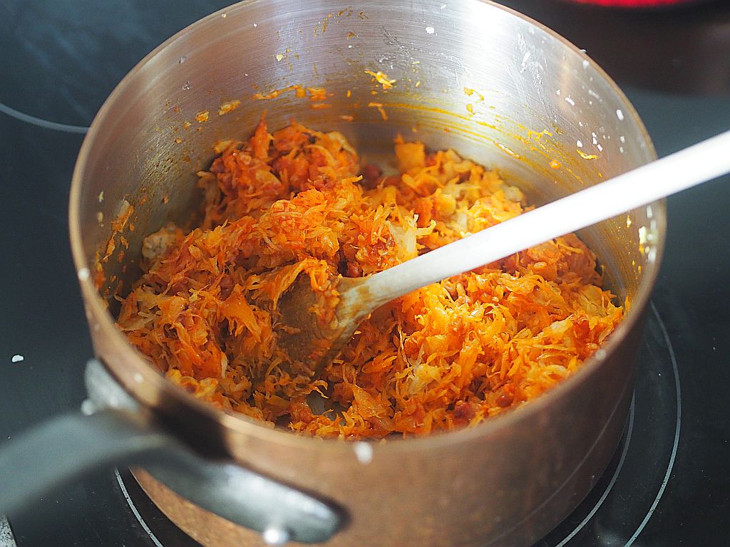 G a n s v o r b e r e i t e n Die Innereien herausnehmen. Die Leber in den Kühlschrank stellen. Die Flügel abschneiden. S o ß e Die Flügel und die Innereien in Butter scharf anbraten. Klein gewürfelte Suppengrün und Zwiebel dazugeben. Mitanbraten. Mit Rotwein und Portwein ablöschen. Einköcheln. Mit dem hausgemachten Hühner-Jus aufgießen, sodaß es bedeckt ist. Lorbeerblatt, Wacholderbeeren, Pimentkörner, getrockneter Majoran und Oregano, frischer Petersilie hineingeben, sowie 3 Orangenschalen und eine Prise Zimt. Bei mittlerer Hitze zugedeckt 3 Stunden köcheln lassen. G e m ü s e b e t t Suppengrün und Zwiebel klein würfeln. Getrockneten Oregano und Majoran daruntermischen und in einem großen Bräter verteilen. G a n s l f ü l l u n g Dann entkernten Apfel und Zwiebel in große Würfel schneiden, mit getrocknetem Oregano und Majoran vermischen. Die Gans innen und außen salzen und pfeffern und einmassieren. Die Apfel-Zwiebel-Kräutermischung in die Gans geben, die Öffnungen verschließen. B r a t e n Auf das Gemüsebett im Bräter legen und 3 Stunden bei 150°C Umluft braten. Darunter ein Ofenblech mit Wasser stellen. Von Zeit zu Zeit mit dem austretenden Ganslschmalz beträufeln. Die Gans aus dem Bräter nehmen auf ein Backgitter legen und bei 200°C weitere 30 Min. das Gansl knusprig braten. Das Schmalz und Gemüse aus dem Bräter in ein Sieb abgießen, in eine Trennkanne geben, die Flüssigkeit zur Soße geben. Das Schmalz in einem Weckglas auskühlen lassen und im Kühlschrank für die weitere Verwendung aufbewahren. Die Soße einköcheln lassen und vor dem Servieren, wenn nötig binden. S c h m o r s c h a l o t t e n In der Zwischenzeit die geschmorten Schalotten machen: die Schalotten längs halbieren, in Butter anschwitzen mit Port ablöschen. Und den frisch gepreßten Orangensaft dazugeben, einköcheln. Anschließend Rotwein und Gemüsebrühe dazufügen, sodaß die Schalotten bedeckt sind. Thymianzweige, Lorbeerblatt und eine Prise Zimt dazugeben. Und zu dem Gansl schieben. Etwa 30 Min. schmoren lassen. Auf die Seite stellen und kurz vor dem Servieren: Die Schalotten aufkochen, mit Salz und Aceto Balsamico abschmecken und wenn nötig mit Speisestärke binden. M a r o n i e r d ä p f e l k u c h e n Erdäpfel „Laura“ in der Schale in Salzwasser weichkochen. Ausdampfen lassen. Schälen. Durch die Erdäpfelpresse schieben. Auskühlen lassen. Die Eier trennen. Den Dotter und die Speisestärke unter die Erdäpfel mischen. Mit Salz und Pfeffer kräftig abschmecken. Das Eiweiß steif schlagen und unter die Erdäpfelmasse heben. Gewürfelte Maroni vorsichtig darunterheben. In eine ausgebutterte Rundform geben, bei 160°C 25 Min. backen. B i r n e n w i r s i n g Wirsing in dünne Scheiben schneiden. In Salzwasser blanchieren. Abtropfen lassen und abtrocknen. Kurz vor dem Servieren Schalotten längs in dünne Scheiben schneiden. In Butter anschwitzen. Räucherspeck dazugeben. Geschälte und entkernte Birne in mundgerechte Stücke schneiden und zu den Schalotten geben. Kurz mitschwitzen. Wirsing dazugeben. Gemüsebrühe dazugeben und ein paar Min. köcheln lassen. Mit Zitronenschale, Zitronensaft und Cayennepfeffer abschmecken. Z w e t s c h k e n r o t k r a u t das Rotkraut mit der Mandoline in feine Scheiben schneiden. Die hausgemachte Zwetschkenmarmelade in einer Pfanne karamelisieren. Mit Portwein ablöschen. Orangensaft dazugeben und einköcheln. Das Rotkraut dazugeben, umrühren. Soviel Gemüsebrühe, damit es gerade bedeckt ist. Eine Prise Salz und Lebkuchengewürz dazugeben. Zugedeckt weich schmoren. Auf die Seite stellen. Kurz vor dem Servieren das Rotkraut erwärmen, die geviertelten Zwetschken hineingeben, mitschmoren. Falls zuviel Saft, mit Stärke binden. Anrichten