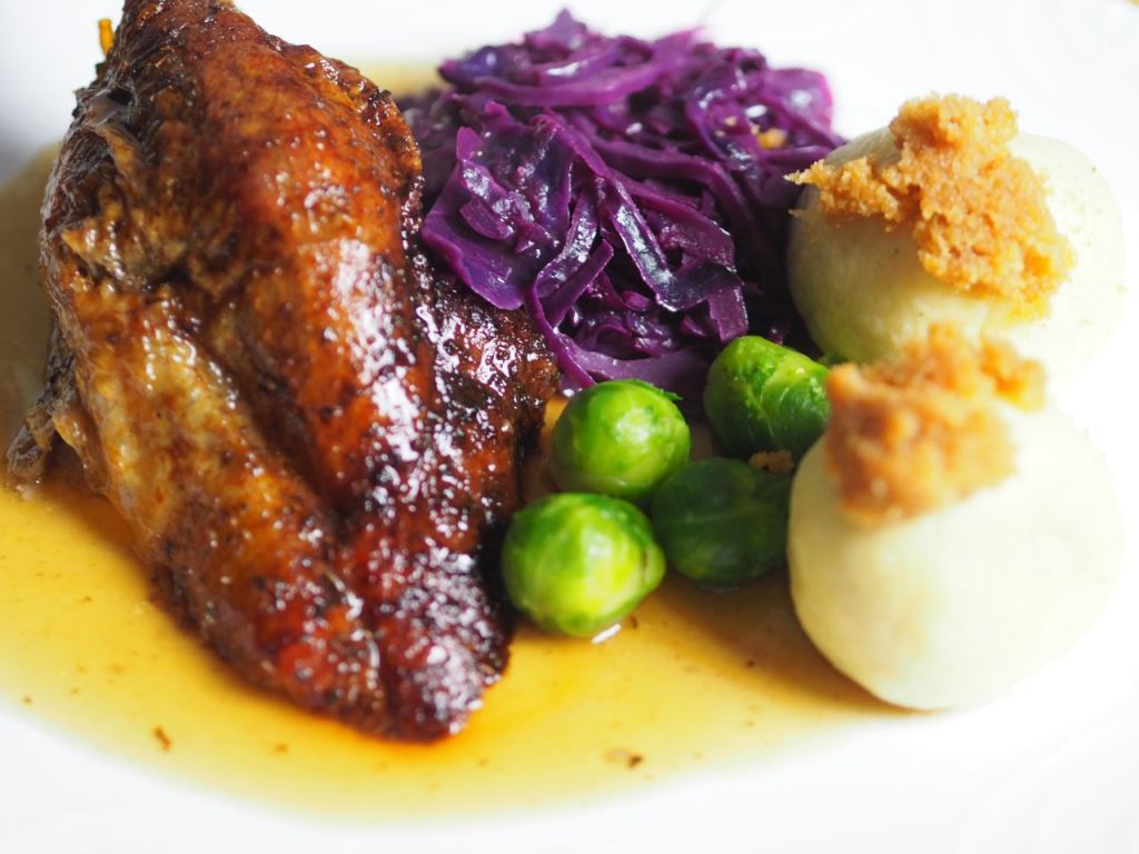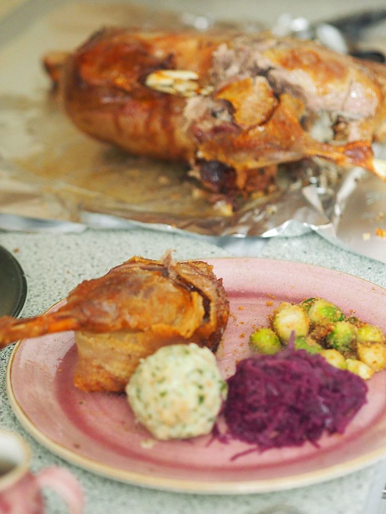 Wir halten den Heiligen Martin ebenso in Ehren, dieses Jahr mit einem Gansl aus dem Waldviertel. Dazu kamen mit Kürbis gefüllte Erdäpfel-Rouladen und ein Apfel-Rotkraut. Davor gab es eine altmodische Ganslsuppe; – sie wurde mit einer Einbrenn gemacht, die Küchenfee ließ sie 3 Stunden köcheln.