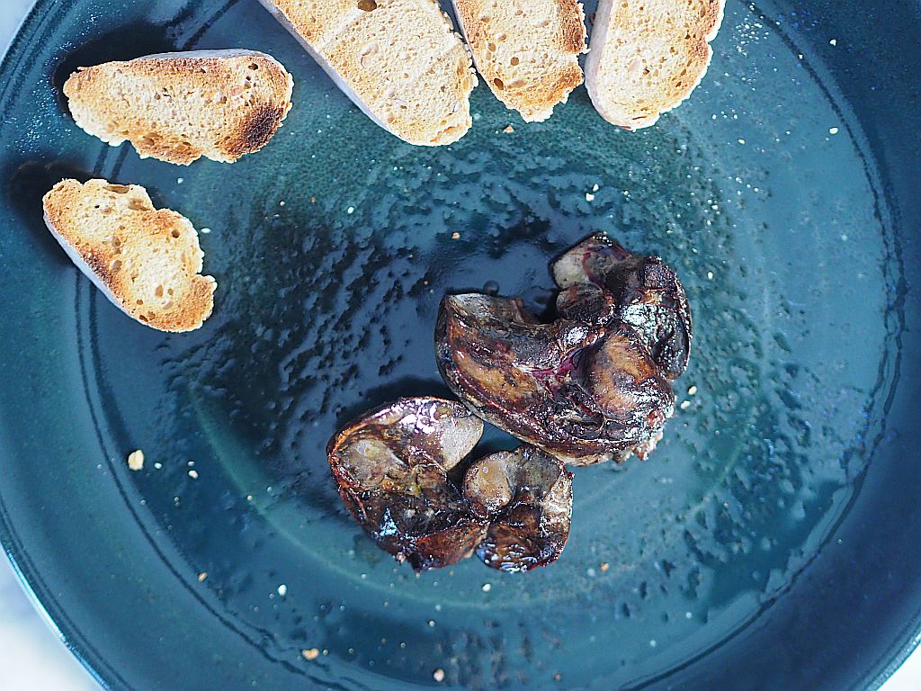 Am nächsten Tag: Kurz vor dem Servieren aufschneiden und in Gänseschmalz beidseitig anbraten.