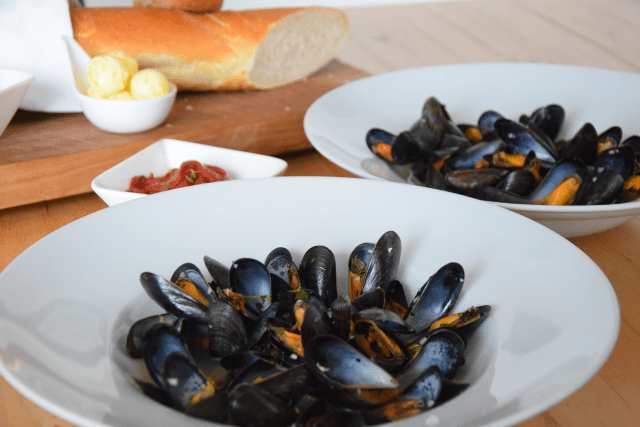 Dieses Wildschwein war natur pur, der Geschmack nach Wildschwein wurde nicht mit Pfeffer oder ausgefuchsten Gewürzmischungen verwässert. So geht es einfacher und so schmeckt es… besser. Dazu kam Rotkohlsalat, Trüffelkartoffeln, passend zum Rotkohl, rötlich schimmernd, und Preiselbeer-Creme, ebenso, auf rötlichen Tellern serviert. Alles aufeinander farblich und geschmacklich 1a abgestimmt. Meine Empfehlung, das ist Schwein+!