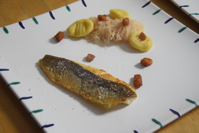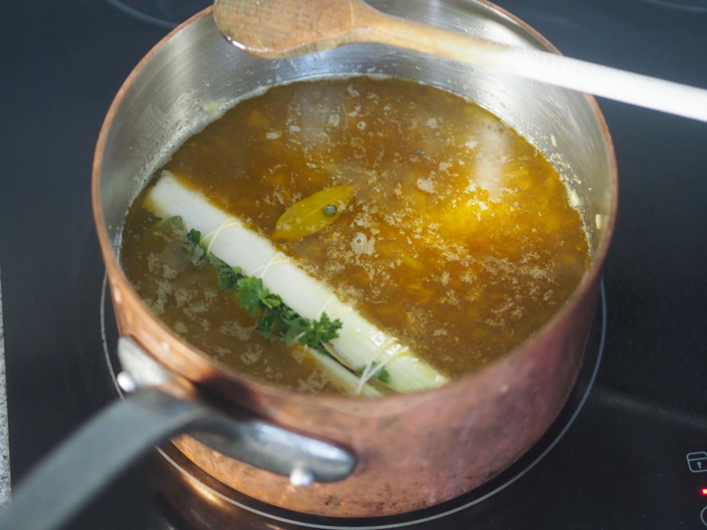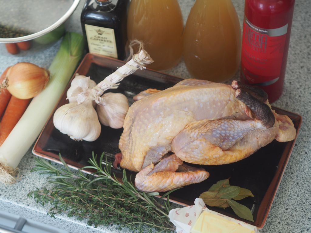 Ob das so schmeckt wie im Bistro „Allard“, wo dieses Rezept herstammt, kann ich nicht beurteilen, wohl eher nicht, da die Bouquet-garni-Frage zu spät geklärt wurde. Aber geschmeckt hat es schon. S. 170 Alain Ducasse „Meine kleine Bistroküche“. Dazu ein GV aus dem Kamptal von Hirsch.