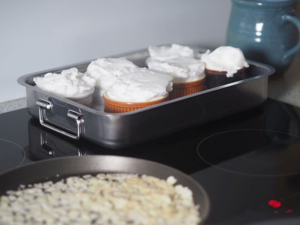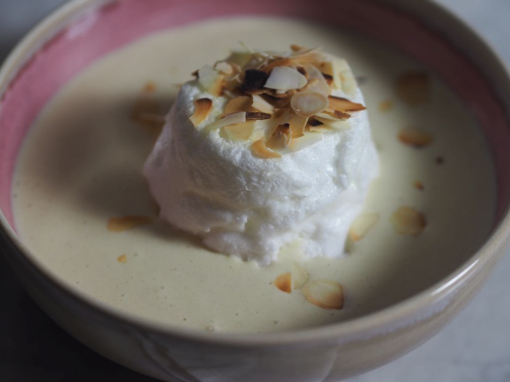 Als Nachspeise gab es „Île flottante“ (Schwimmende Insel), eine Vanillecreme mit Eischnee. Die Küchenfee sagt, sie kennt das aus ihrer Kindheit, das sei Madártej Vogelmilch1. Ich kannte das nicht. Erst bei meinem langjährigen Frankreichaufenthalt habe ich das kennengelernt und gerne gegessen, seitdem nicht mehr. Rezept im Bistrobuch von Alain Ducasse. (S.218)