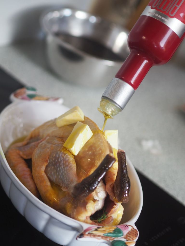 Im Kochbuch steht 200 ml Olivenöl, das kam der Küchenfee ein bißchen viel vor und wollte das auf 100 ml reduzieren. Bei den Franzosen bitte nichts ändern. Die wissen, was sie tun. Anschließend wurde der Saft mit dem Olivenöl getrennt, mit einer Trennkanne und das Olivenöl für die Linsen weiterverwendet. Die Franzosen meinen wohl, Olivenöl sei gesund. Und außerdem freut das den Olivenbauern.