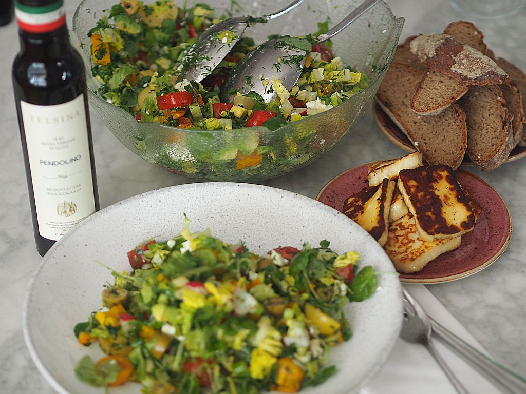 Dazu Kalamata-Oliven in Oregano und einen mediterranen Kalamata-Mix, alles von MANI.