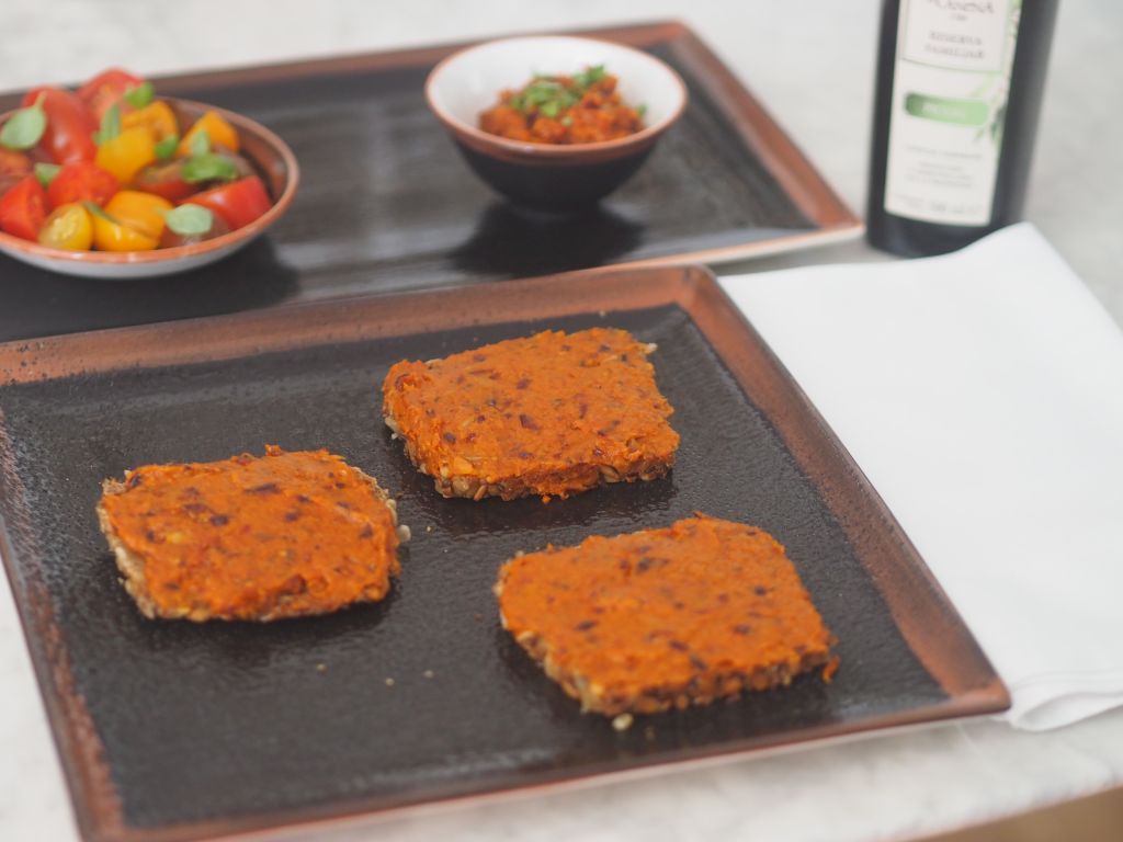 Olivenöl mit Petersilie vermischen und den Fladen damit bestreichen.