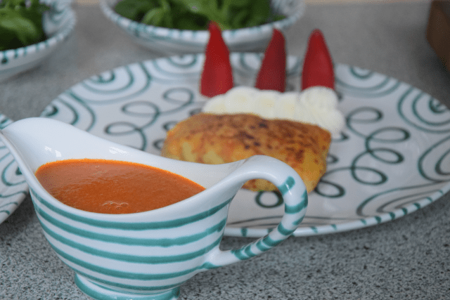 Für die Palatschinken die Eier in einer großen Schüssel aufschlagen. Das Mehl und das Mineralwasser nach und nach dazugeben. Salzen. Halbe Stunde ruhen lassen. In einer Pfanne mit wenig Öl herausbacken.
