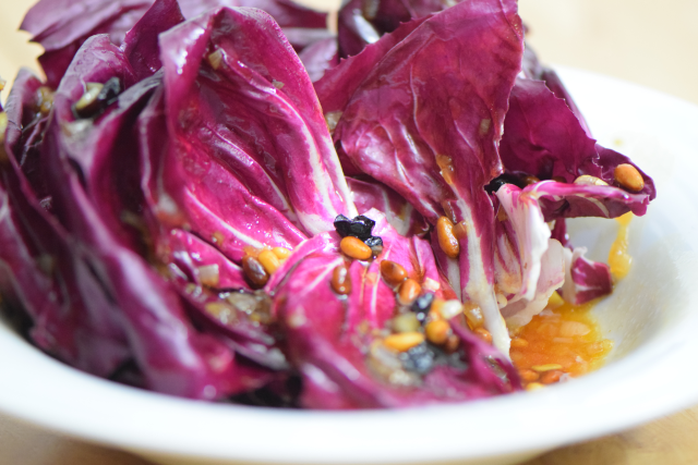 Radicchiosalat mit Beeren und Honig-Vinaigrette/ Hähnchen mit Kapern-Sardellen-Salsa