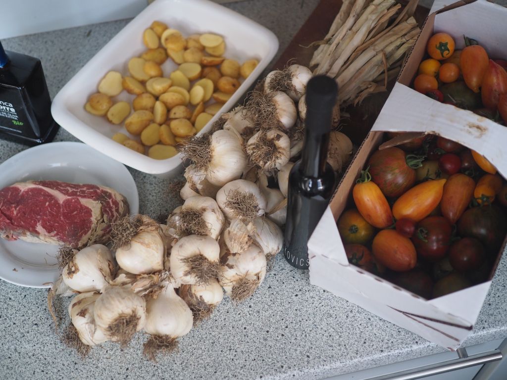 Ein Superschmäh vom Jamie, das Hendl mit der Chorizo zu belegen; sonst schmeckts ja nach nichts… Gut, normalerweise hätten wir das eingewienert und Debreziner oder was Ähnliches genommen, wir hatten aber die Gelegenheit, eine echte Chorizo aus Spanien zu erstehen, die ohne Konservierungsstoffe auskommt. Das Hendl kommt selbstverständlich aus der Steiermark, da gibt’s nix.