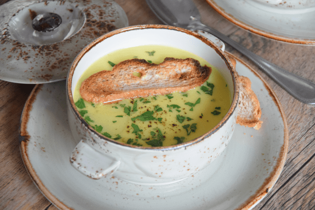 Die Tourtes im Backrohr bei 180°C braten. Mittlerweile die kleinen Kräuterseitlinge in einer Bratpfanne mit etwas Olivenöl schar anbraten. Die Soße aufkochen, mit Maisstärke binden und etwas Crème fraîche einrühren. Das Wurzelpüree warm machen. Anrichten.