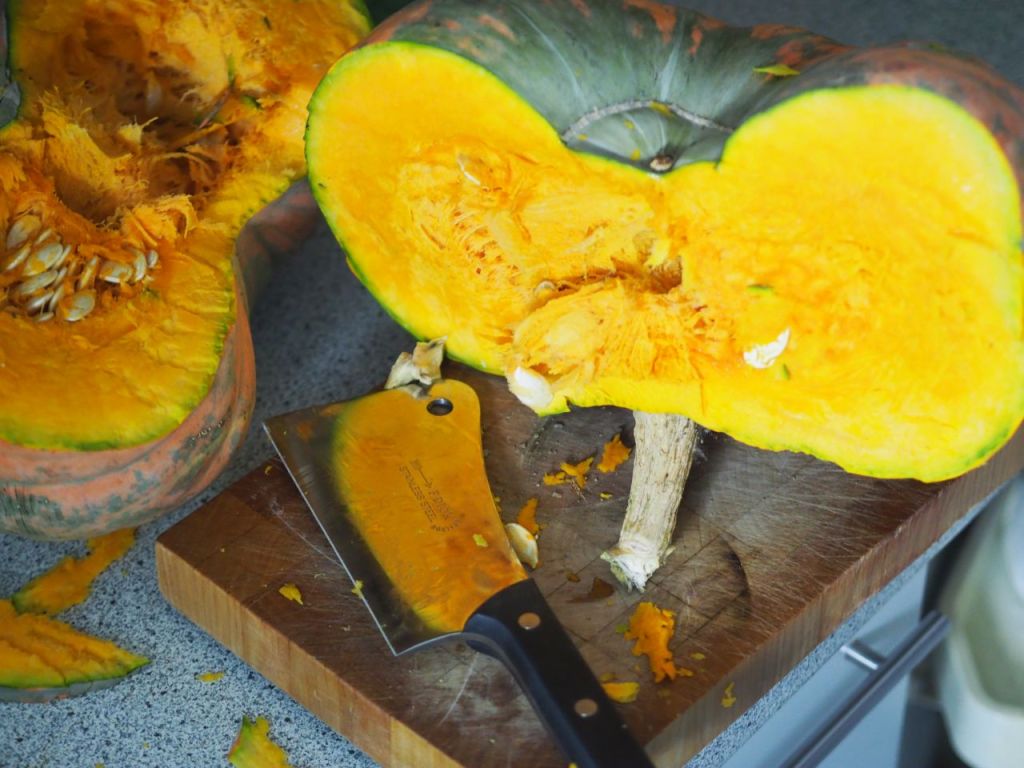 Ich find, es ist die größte Freud, einen Kürbis zu zerhacken. (Obwohl mir dazu der Eberhofer-Krimi mit den abgehackten Zehen einfallt.)