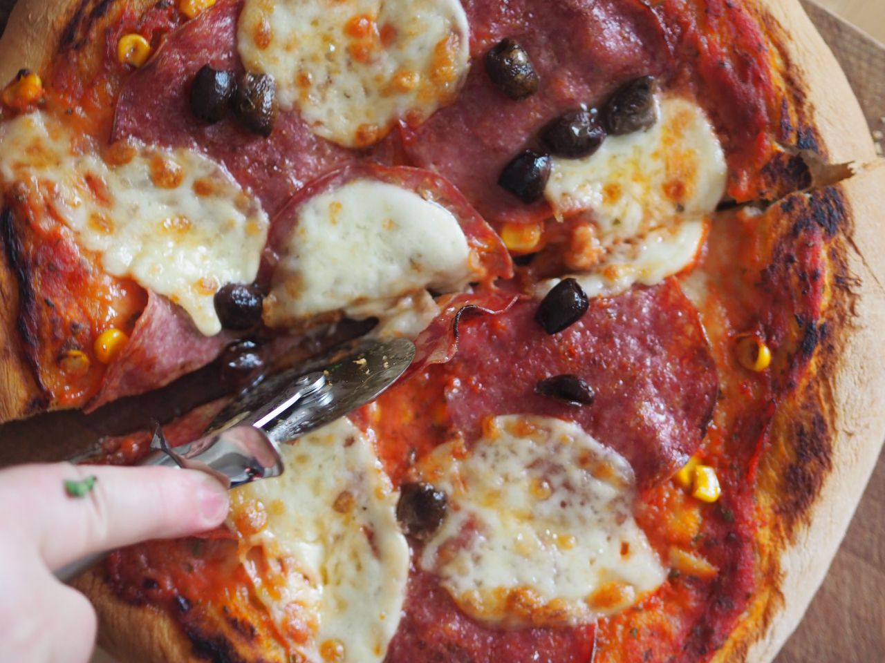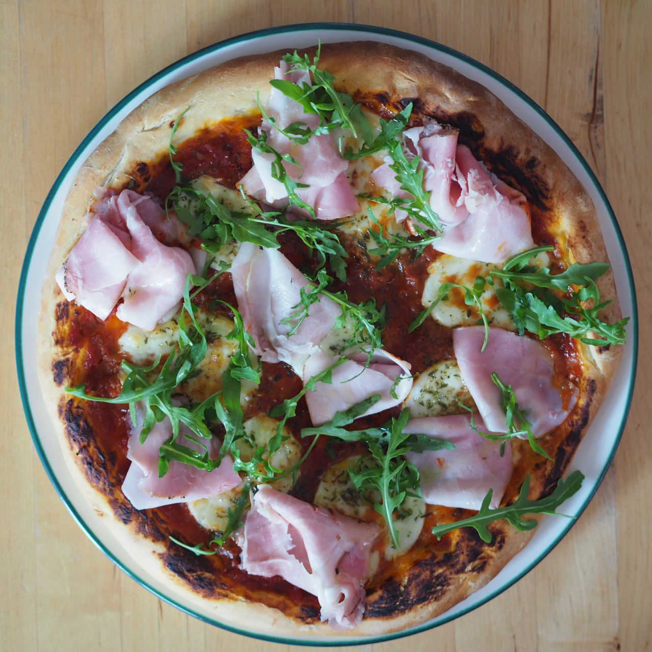 Trotz dieser trüben Aussichten ließen wir uns die Freude am nachträglichen Valentinstag nicht nehmen. Später gab es die Pizzapoesie „Valentinstag“ mit Rucola und Prosciutto Crudo. Danach feine Schnitten vom Dommayer, die wir in weiser Voraussicht von dort mitgenommen hatten.