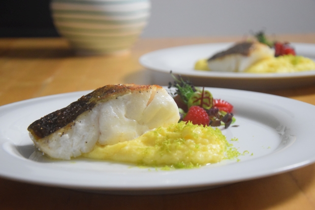 Unser Fisch heute war tatsächlich mal der Hecht im Karpfenteich. Nördlich von Wien, viel weiter nördlich als Klosterneuburg, dort wo es kalt ist, auch im Sommer, im Waldviertel also, dort kommt unser Hecht her. Im Karpfenteich wird er als Gesundheitspolizei eingesetzt. Der Hecht ist wie der Delphin: schön zum Anschauen aber ein Räuber! Wer nicht schnell genug ist, den fressen die Hechte. Das grausame Gesetz der Natur: – verwirklicht im Naturteich im Waldviertel, mehr Bio geht nicht.