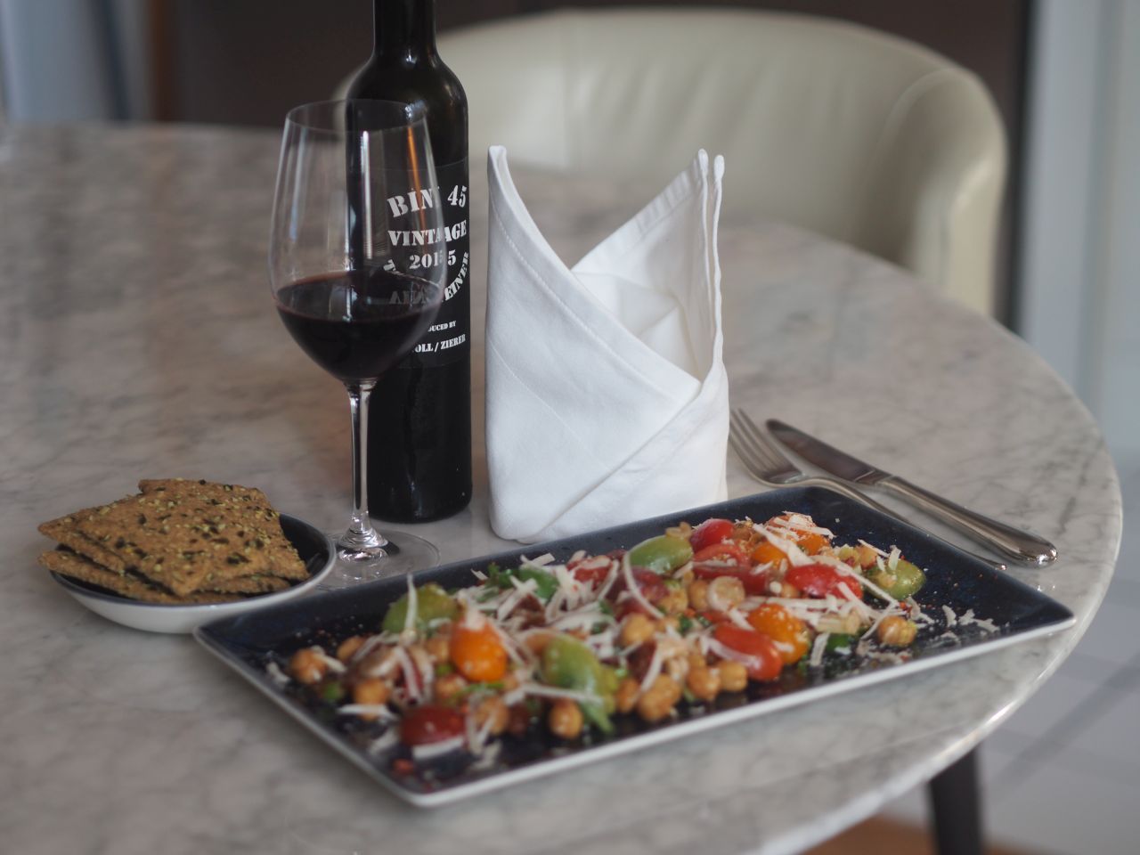 Dazu wurde ein selbstgemachtes Dinkelknäckebrot serviert, sowie ein Glas Wein nach portugiesischem Vorbild, d.h. also „Portwein“ Tagelsteiner,2015, Weingut Harald Zierer, Gumpoldskirchen „BIN 45“.