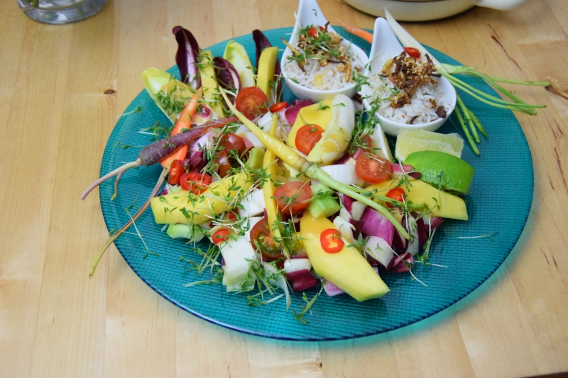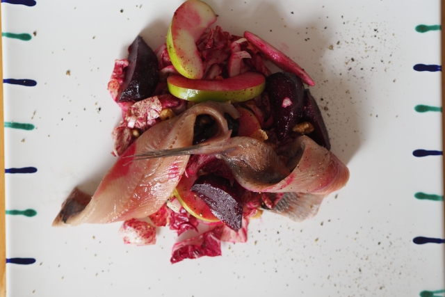 Nach dem großen Schmaus vom Sonntag blieb noch etwas Forellencreme übrig. Das macht nichts; denn auch wenn das etwas Besonderes war, so ist es doch möglich, aus den Überbleibseln eine wohlschmeckende Speise zuzubereiten. Davon kommt ja das große Verzagen, an dem oft Großes scheitert: man macht etwas Außergewöhnliches und weiß dann nicht, was mit den Resten geschehen soll – falls etwas übrig bleiben sollte. Nun, weiterverwenden! So kann man aus dem Vollen schöpfen. Nach einem Rezept bei Anne Fleck wird die Forellencreme gereicht anstelle des Meerrettich-Dips zum Blumenkohl-Parmesan-Rösti! Und das schmeckt! Wieder etwas Neues, Gelungenes!