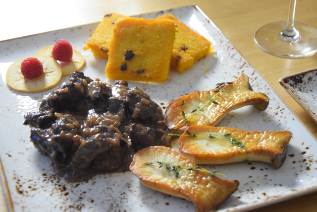 Rehragout mit Eierschwammerl Rotkraut und Schupfnudeln in Wildsoße