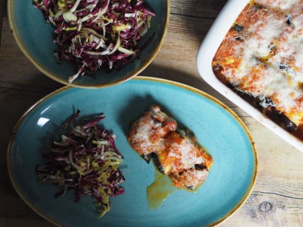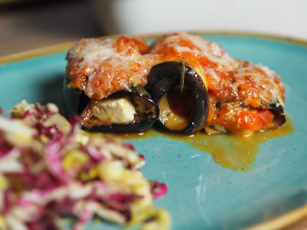 Rezept Überbackene Auberginenröllchen mit Schafkäse
