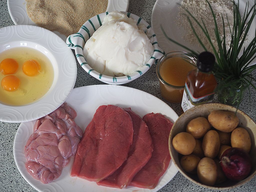 Wir waren in der Fleischerei Ringl, auf der Gumpendorfer Straße 105 im 6. Bezirk, wo wir die Schnitzel vom Kaiserteil also aus der Schale bekommen haben, denn nur vom Kalb und nur vom Kaiserteil ist es ein Wiener Schnitzel. Es gibt kein Wiener Schnitzel vom Schwein, es gibt ja auch keinen Wein von der Gerste, sonst wär‘s ja ein Bier geworden.