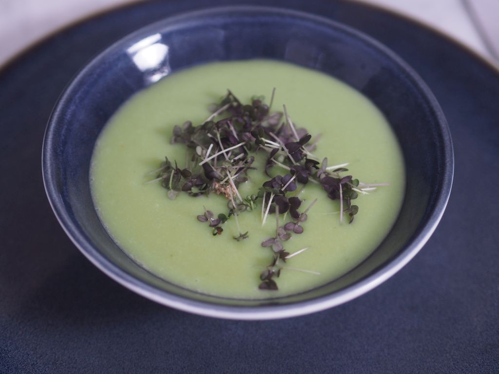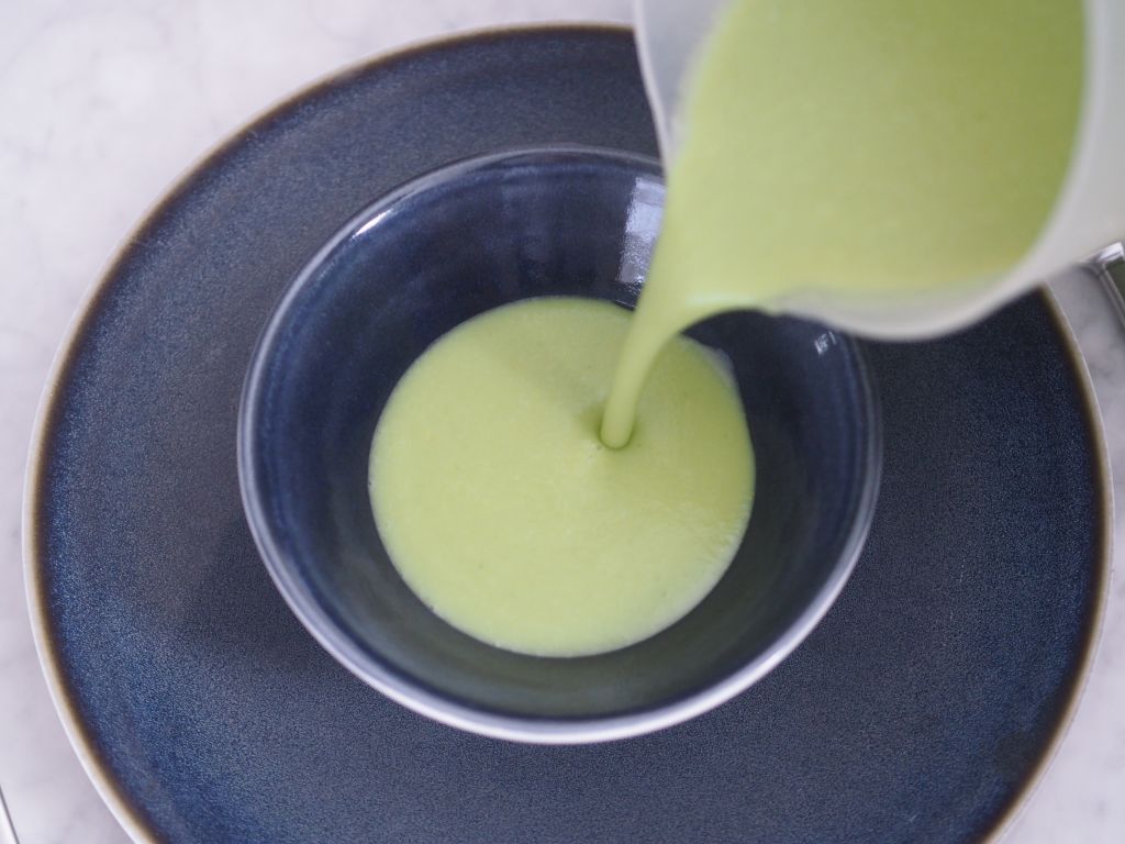 Gazpacho Grüne Gurken, grüne Paprika, grüne Äpfel (Granny Smith) und Avocado und Limettensaft, Wasser und Salz im Standmixer pürieren.