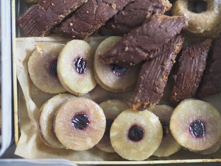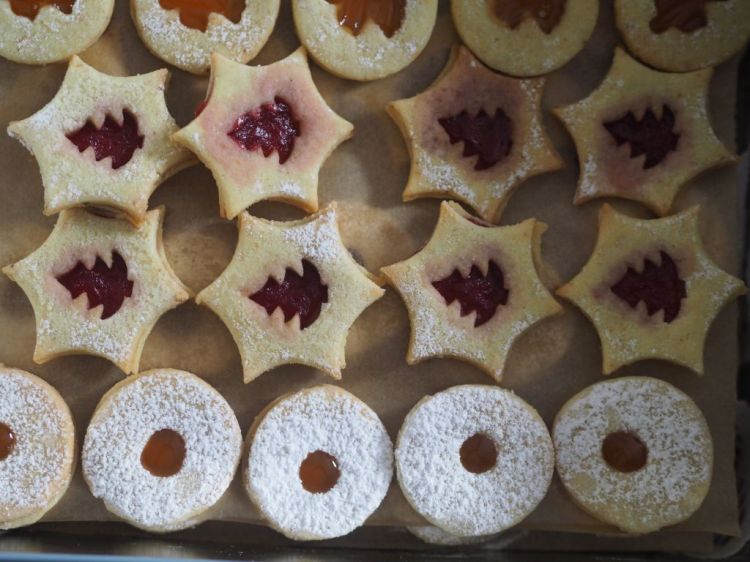 5. oben Linzer Plätzchen (nicht vegan), 6. unten Spitzbuben (nicht vegan)