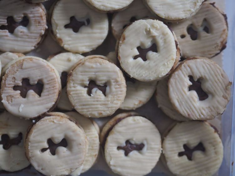 10. Linzer Augen (vegan), 11. oben und rechts Magenbrot (vegan)