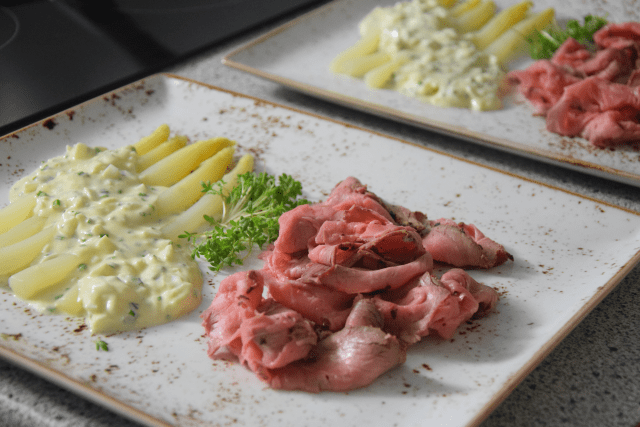 Heute gab es zum Frühstück: Belegte Brote. Mit Roastbeef!