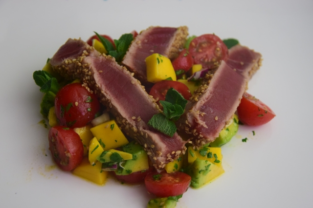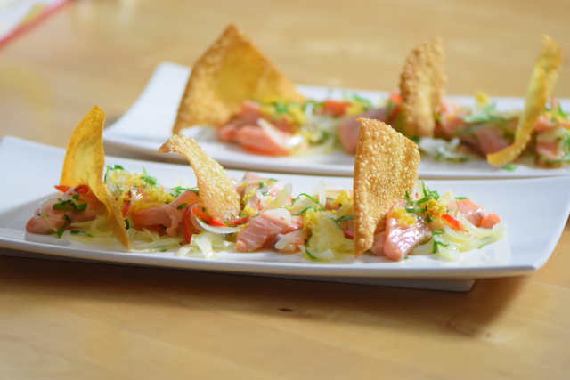 Die Tomatenflocken wurden angerührt zum Tatar geschüttet.