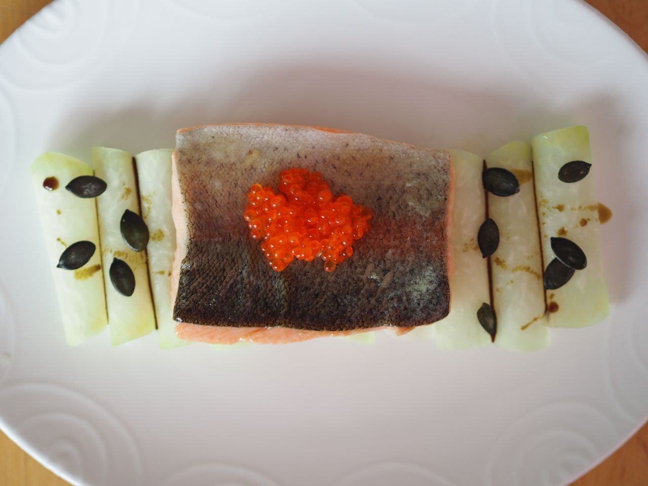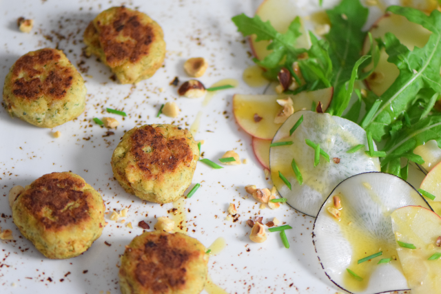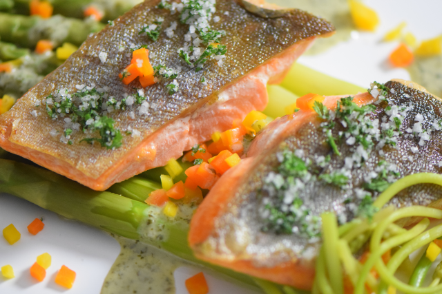 - Saiblings-Mousse auf gemischtem Salat mit jungem Blattgemüse