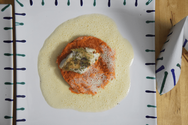 Wenn die Sauce keine sabayonartige Konsistenz erhält, also zu fest wird, weitere Dotter dazu geben. Und weiter mixen.