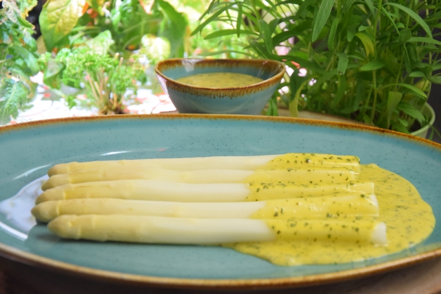 Mit Marchfelder Solospargel; Estragon, Eier, Schalotten, Butter, Salz, Pfeffer.