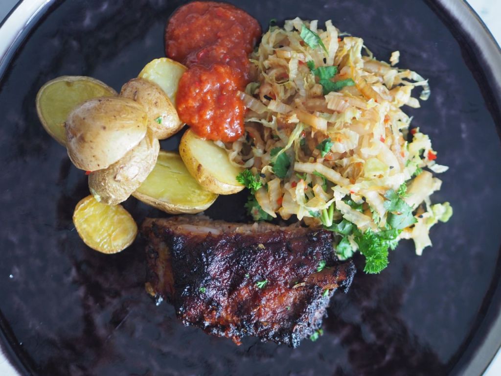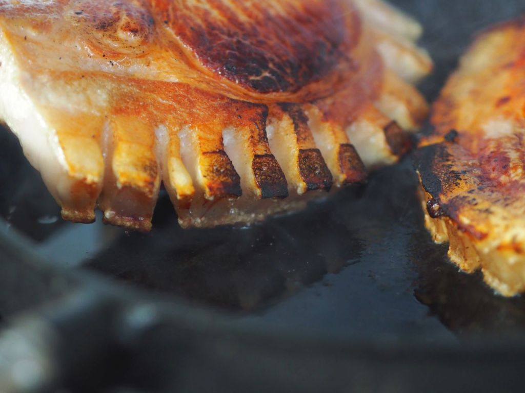 Ganz einfach ist und schnell geht das. Der Pak Choi passt gut zu dem gebratenen Chili, scharf und mild, Gegensätze ziehen sich an. Dazu kommt der saftige Schweinskotelett mit dem knusprigen Schwarte, auch hier, Gegensätze ziehen sich an. Aber gebraten muss es sein.