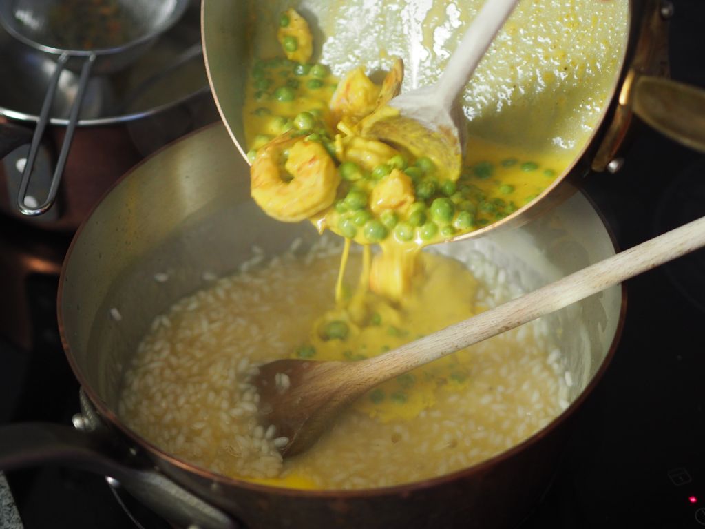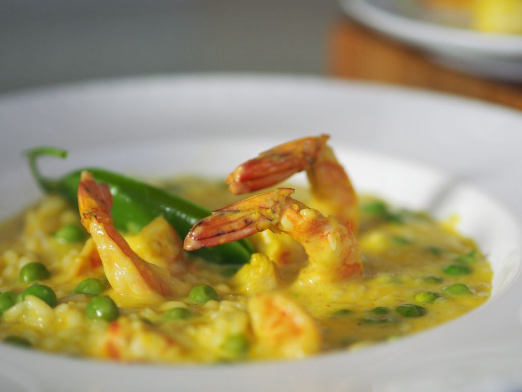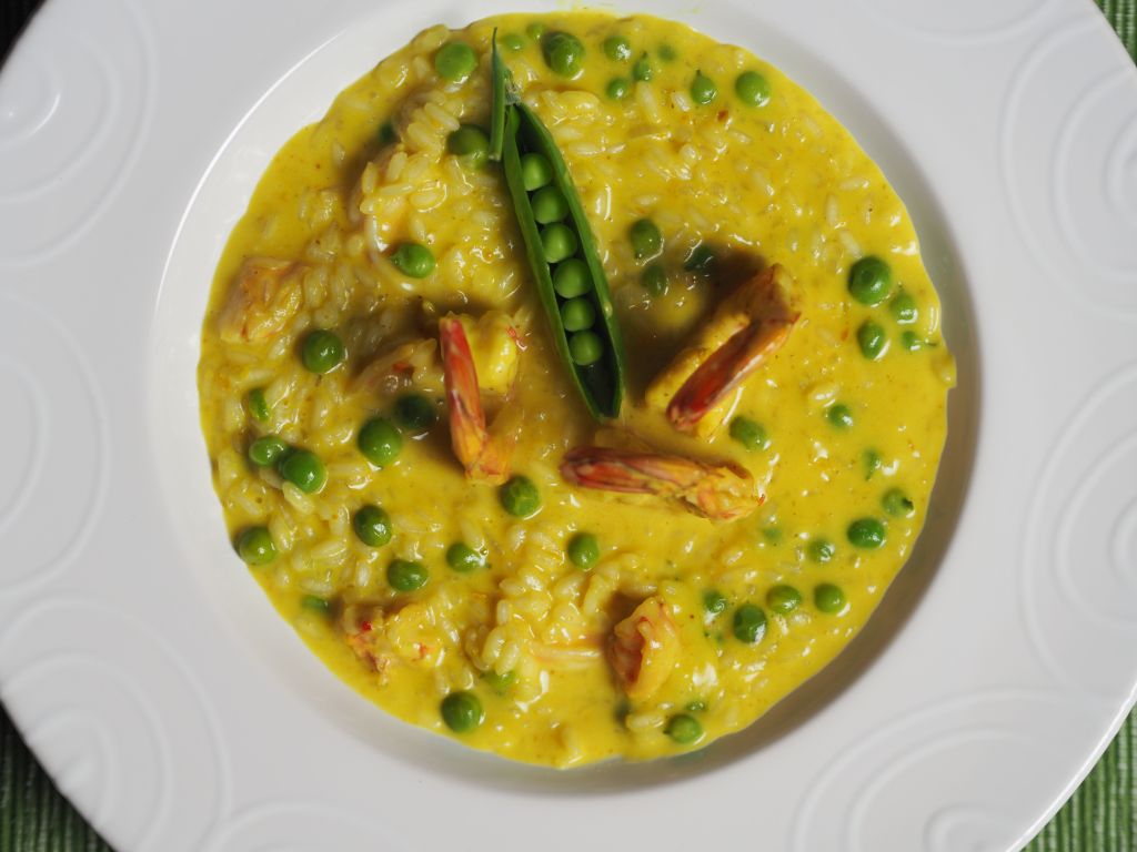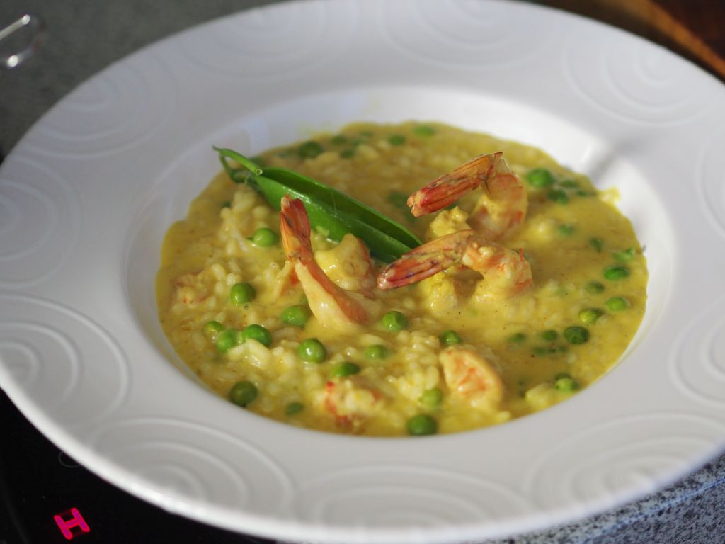Risotto mit Curry und Garnelen