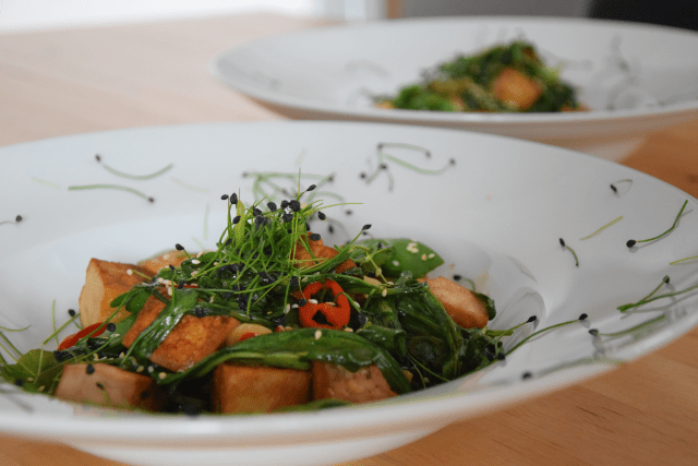 Wasserspinatsalat mit Tofu und Salzfingern