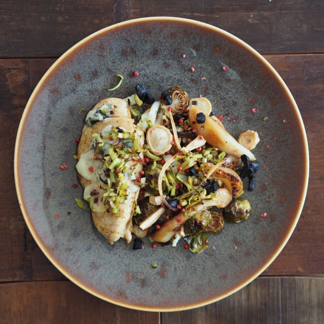 - Lauwarme Kohlsprossen mit Tahini-Dressing und schwarzem Knoblauch