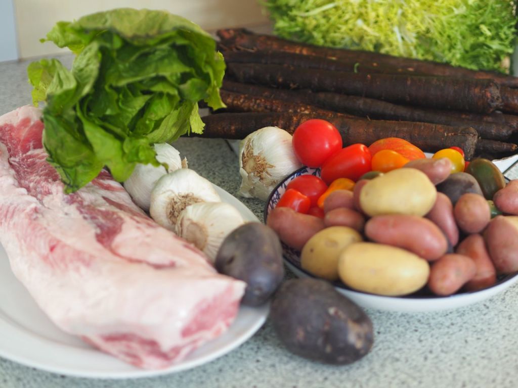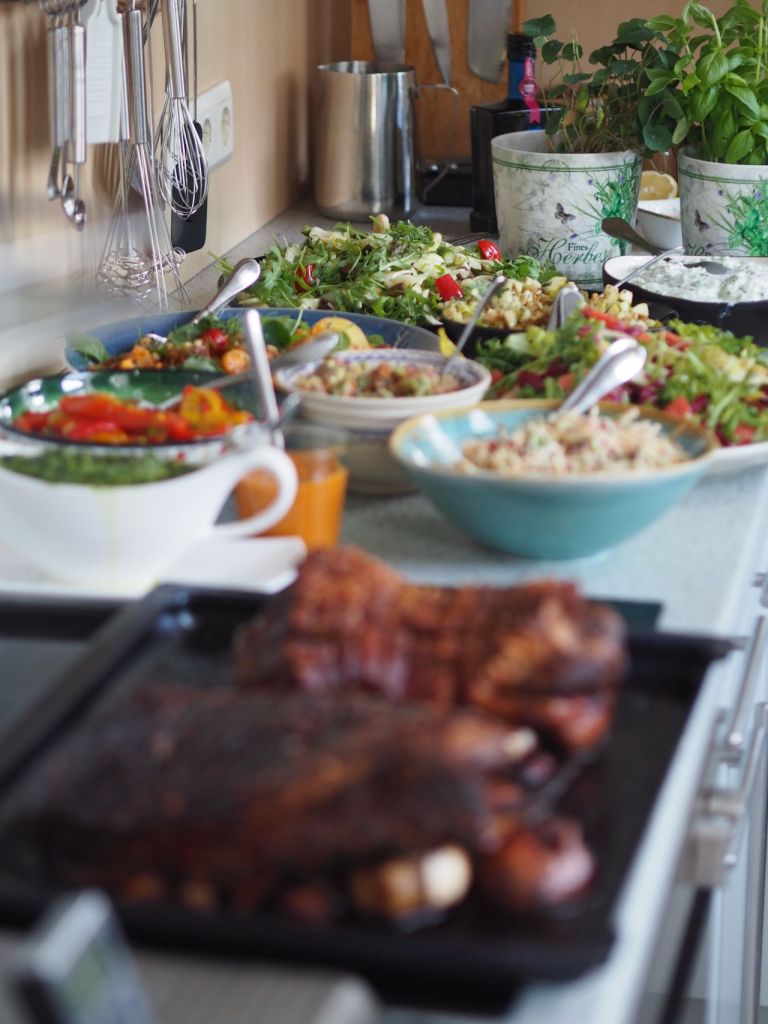 Schweinsbraten mit Kraut und Semmelknödel, das hatten wir uns vorgenommen, doch der aufgetaute Schweinsbraten von Tiroler Bauern, den die Familie für uns mitgenommen hat, entpuppte sich als 2 kg Schweineschulter, in Scheiben geschnitten. Und so, liebes Tagebuch, kam es zu diesem denkwürdigen Kreativ-Kochwochenende. Das war der Plan:
