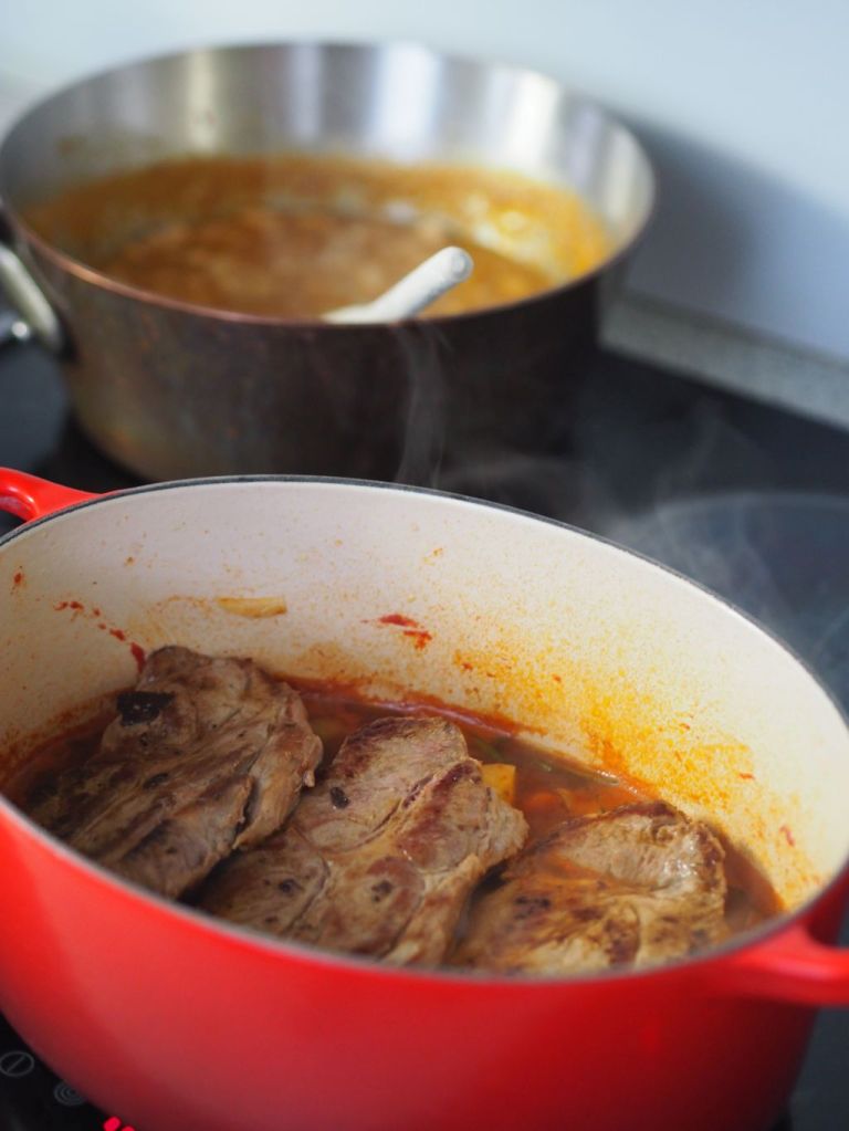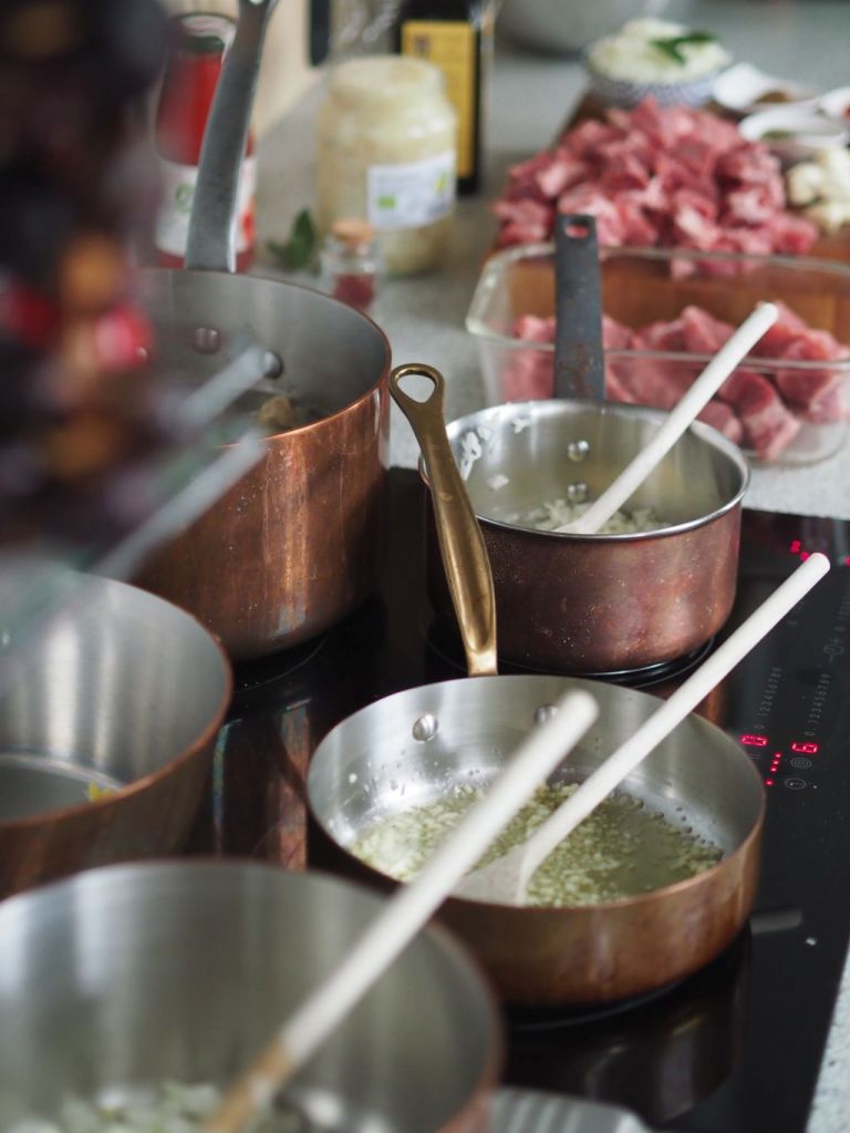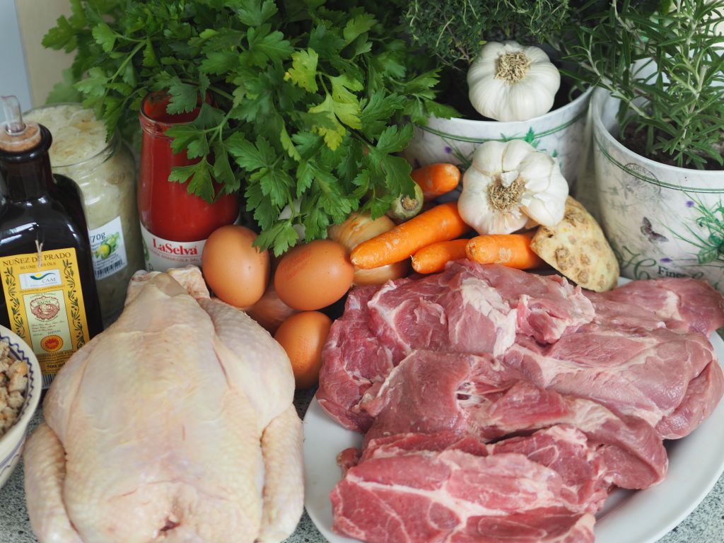Am ersten Tag wird viel vorbereitet, die Hühnerbrühe, die für die anderen Gerichte benötigt wird, das Pörkölt und das Sauerkraut, Sofrito, Picada und die Knödel. Nur das Krautfleisch entstand als fertig essbares Gericht an diesem Tag.