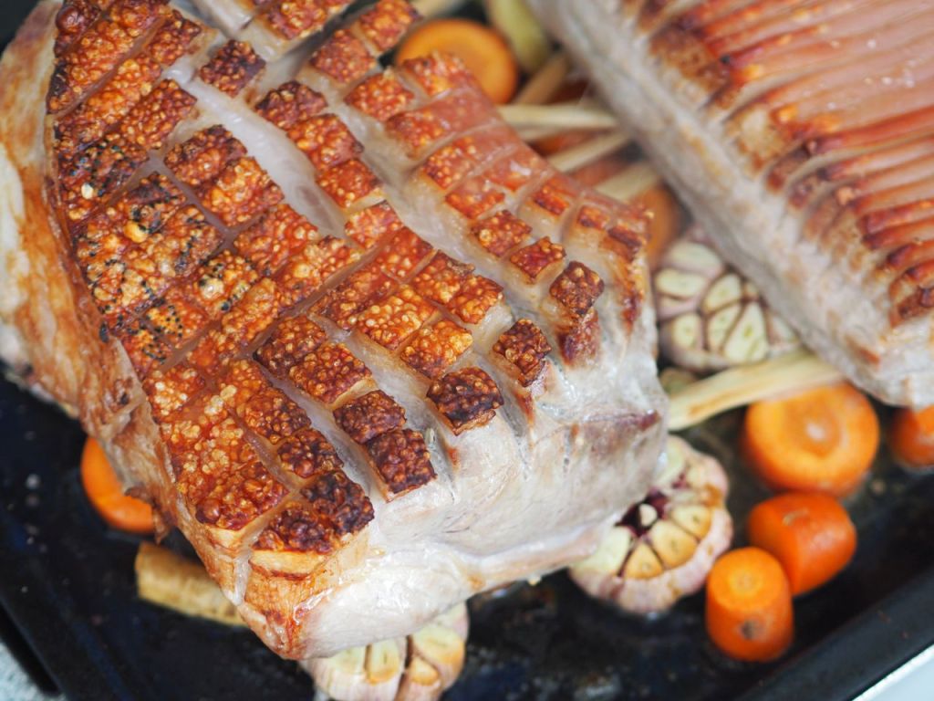 - Im Ofen gebratene Schweineschulter mit Semmelknödeln und Sauerkraut