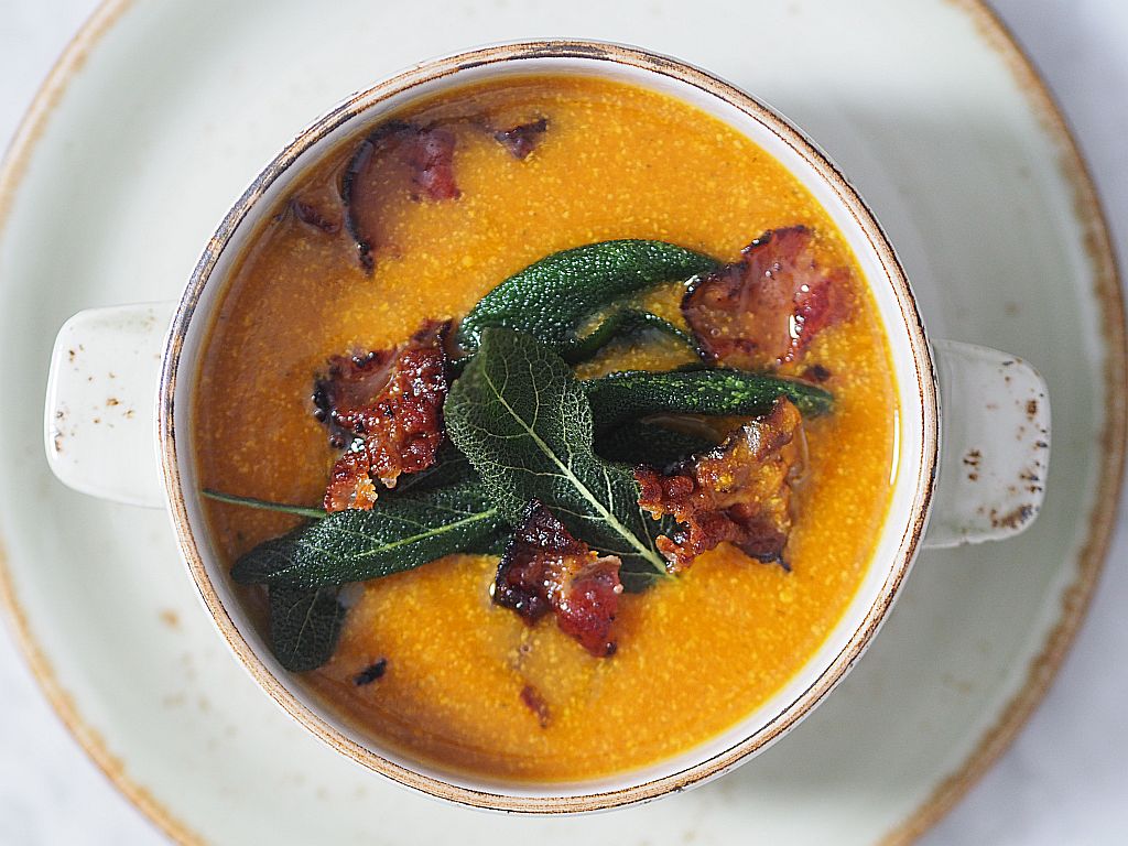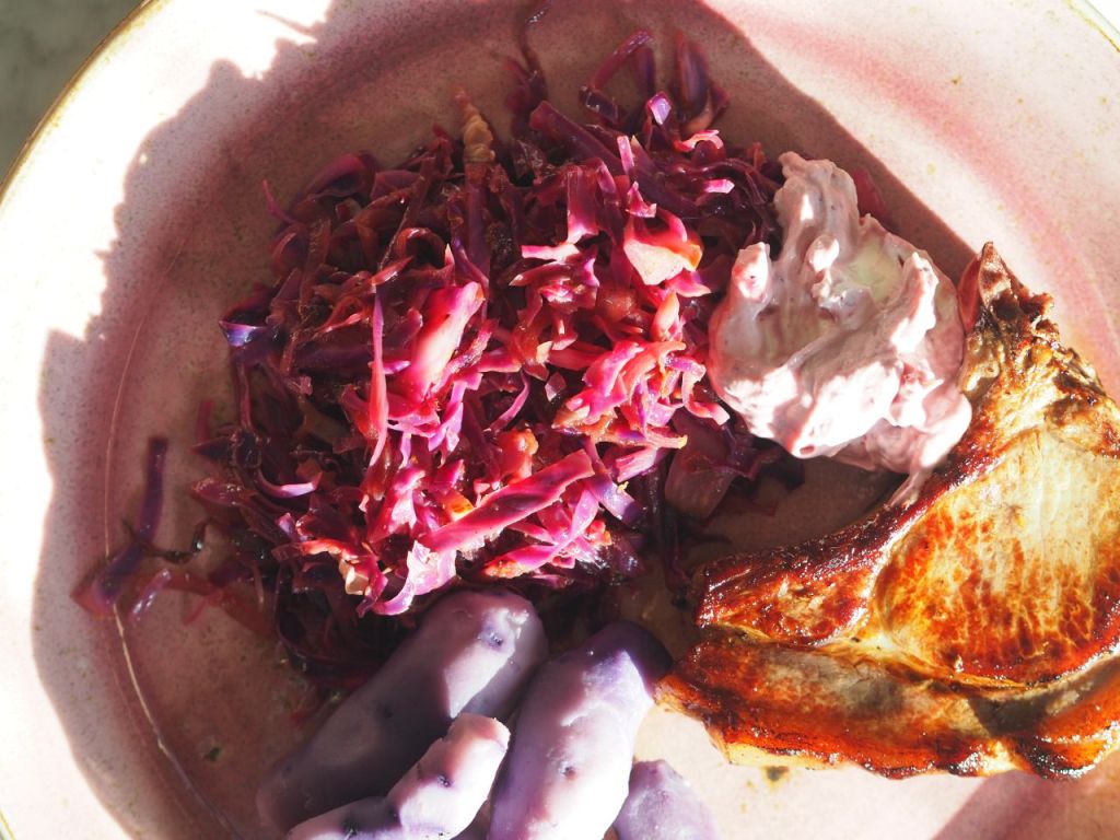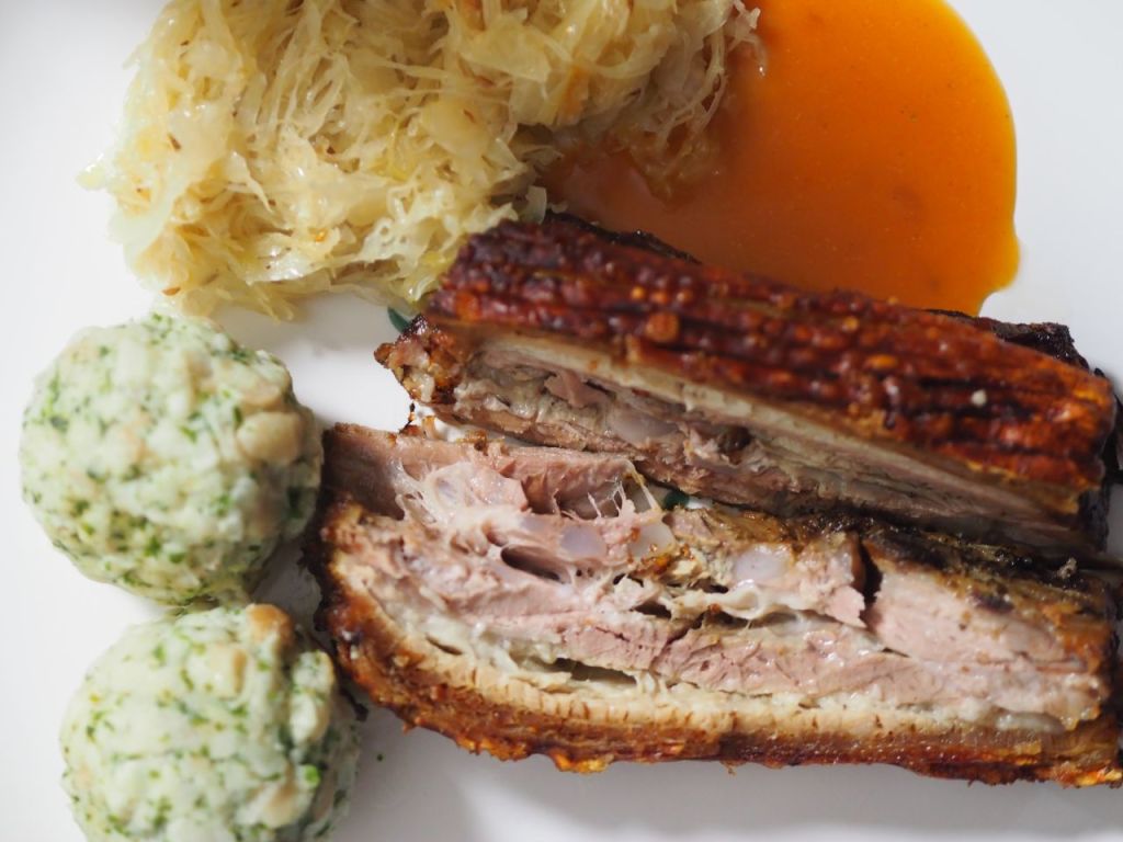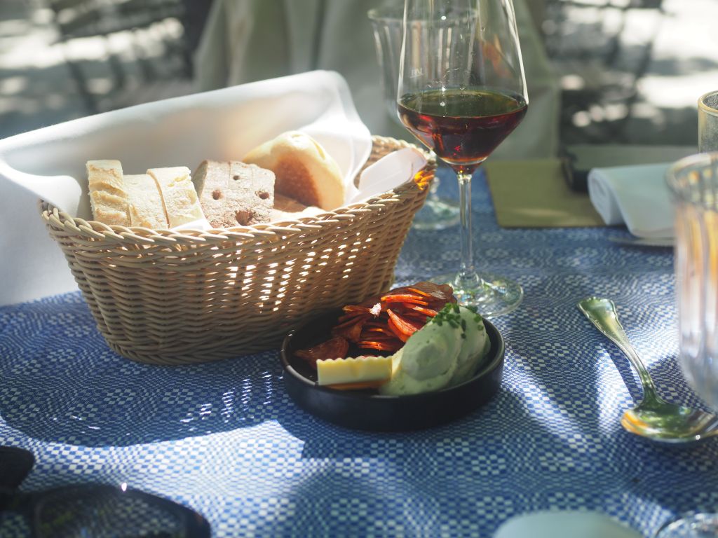 Wir hatten vor, einmal die Speisekarte von ganz oben bis ganz unten durchzuprobieren: also begannen wir mit einem Aperitif, einem Vitamin-Cocktail alkoholfrei. Dann gab es einen Gruß aus der Küche, Aufstrich, Butter, Mangalitzawürste mit Brot, ich glaub es war auch ein Sauerteigbrot dabei. Mit Stoffservietten, die Kellner stehen am Rand bei der Kassa und doch in der Mitte und warten, bis sie gerufen werden, der Teller wird sofort abgeräumt, serviert wird ausschließlich von rechts, so stelle ich mir Wirtshauskultur vor.
